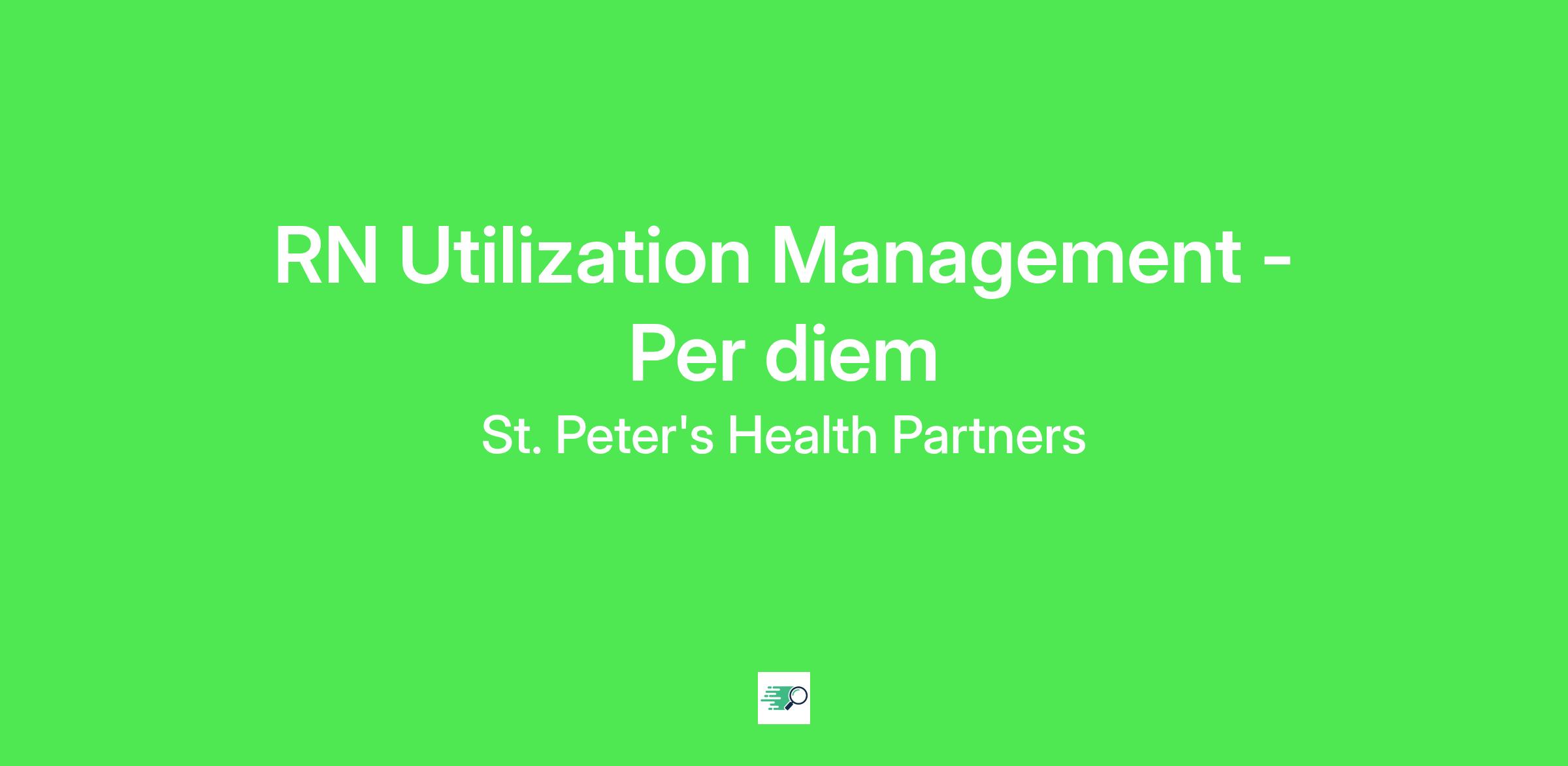 *Employment Type:* Part time *Shift:* 12 Hour Day Shift *Description:* *RN Utilization Management -Per diem* If you are looking for an RN position in Case Management, this could be your opportunity. Here at St. Peter's Health Partner's, we care for more people in more places. *Position Highlights:* * *Recognized leader: *Magnet Hospital in the Capital Region * *Quality of Life:* Where career opportunities and quality of life converge * *Advancement: *Strong orientation program, generous tuition allowance and career development * *Work/Life: *Positions and shifts to accommodate all schedules *What you will do:* * Perform utilization management, both concurrent and retroactive for inpatient and outpatient services in accordance with the utilization program which meets the requirements of JCAHO and third party payor contracts. *Responsibilities:* * Responsible for the length of stay and level of care to provide effective and efficient health care services that best serve the needs of the patient. * Work within and contribute to an environment where the mission is actualized, patient focused outcoes are achieved and high quality professional practice is realized. *What you will need:* * *Minimum requirements:* * Current and valid NYS RN license * Bachelor of Science in nursing, or willingness to purse defined plan for matriculation in program demonstrated by ongoing course work each semester * BLS certification * 2 years of experience in acute setting or one year in community health * * *Preferred requirements:* * Discharge planning and community resource knowledge * Basic knowledge of the utilization management process * Working knowledge of recognized industry clinical standards, i.e. Interqual, Milliman Care Guidelines. * Maintain the highest level of customer service while completing day to day duties and responsibilities * Critical thinking skills to problem solve * Excellent time management and organizational skills * High level of efficiency to communicate in a fast pace work environment * Engage within a team setting to help promote a strong team culture The team is willing to help train the right candidate as long as they meet the minimum requirements and have the desire and ability to learn and grow into this wonderful opportunity to progress in their nursing career. *Pay Range:* $34.20-$48.45hr Pay is based on experience, skills, and education. Exempt positions under the Fair Labor Standards Act (FLSA) will be paid within the base salary equivalent of the stated hourly rates. The pay range may also vary within the stated range based on location. *Our Commitment * Rooted in our Mission and Core Values, we honor the dignity of every person and recognize the unique perspectives, experiences, and talents each colleague brings. By finding common ground and embracing our differences, we grow stronger together and deliver more compassionate, person-centered care. We are an Equal Opportunity Employer. All qualified applicants will receive consideration for employment without regard to race, color, religion, sex, sexual orientation, gender identity, national origin, disability, veteran status, or any other status protected by federal, state, or local law.