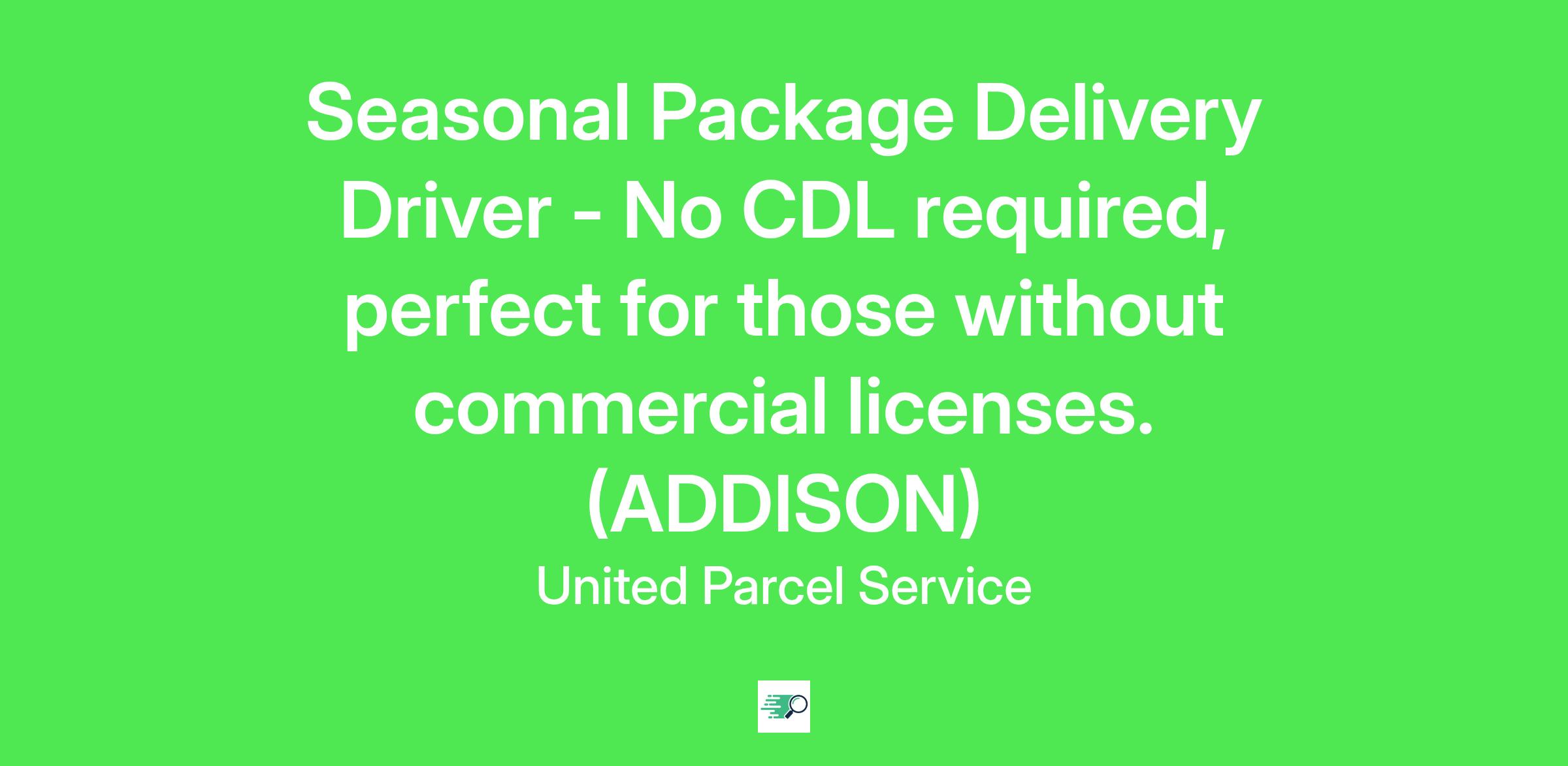 Seasonal Package Delivery Driver - No CDL required, perfect for those without commercial licenses. (ADDISON)