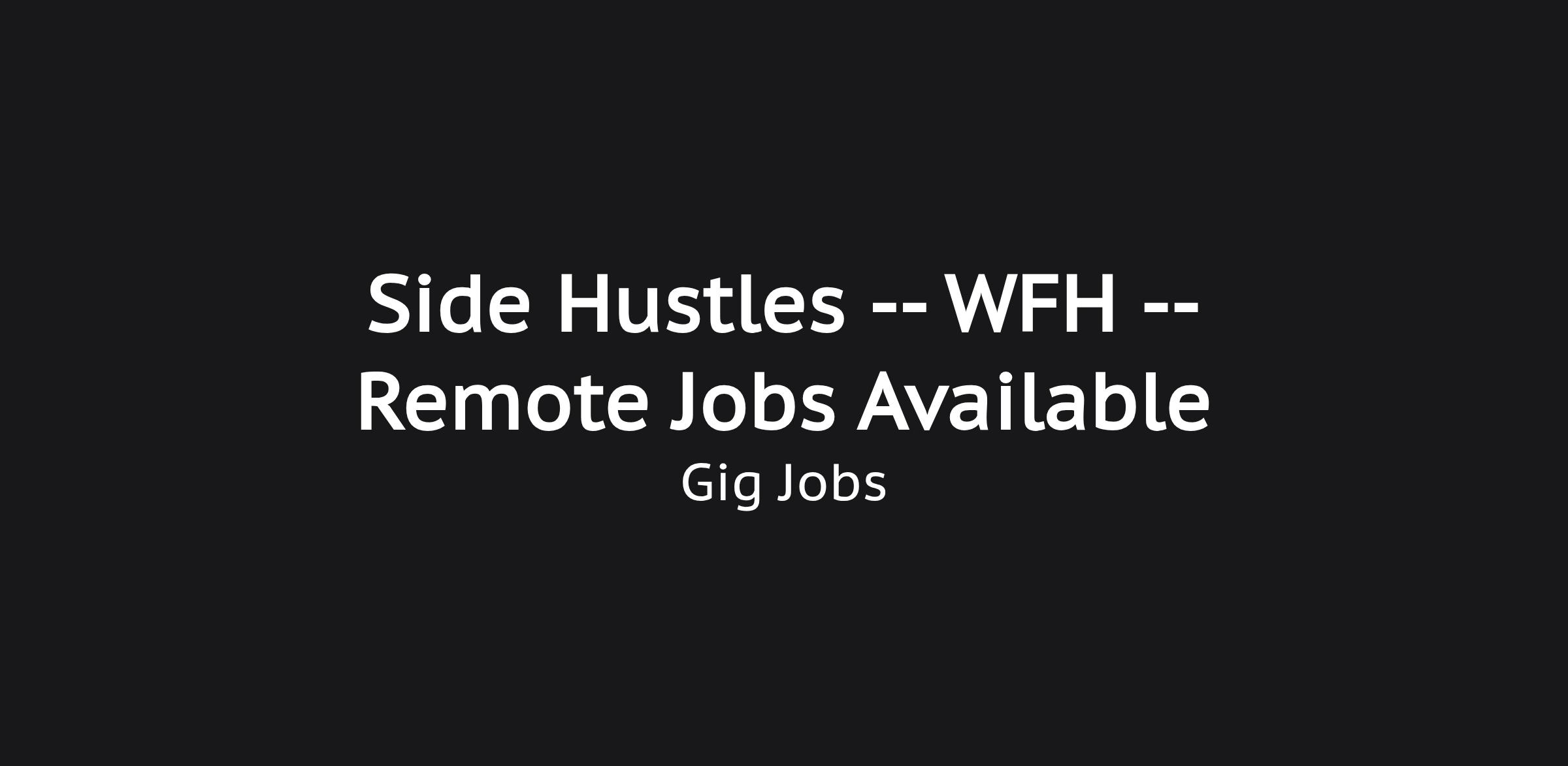 Side Hustles -- WFH -- Remote Jobs Available