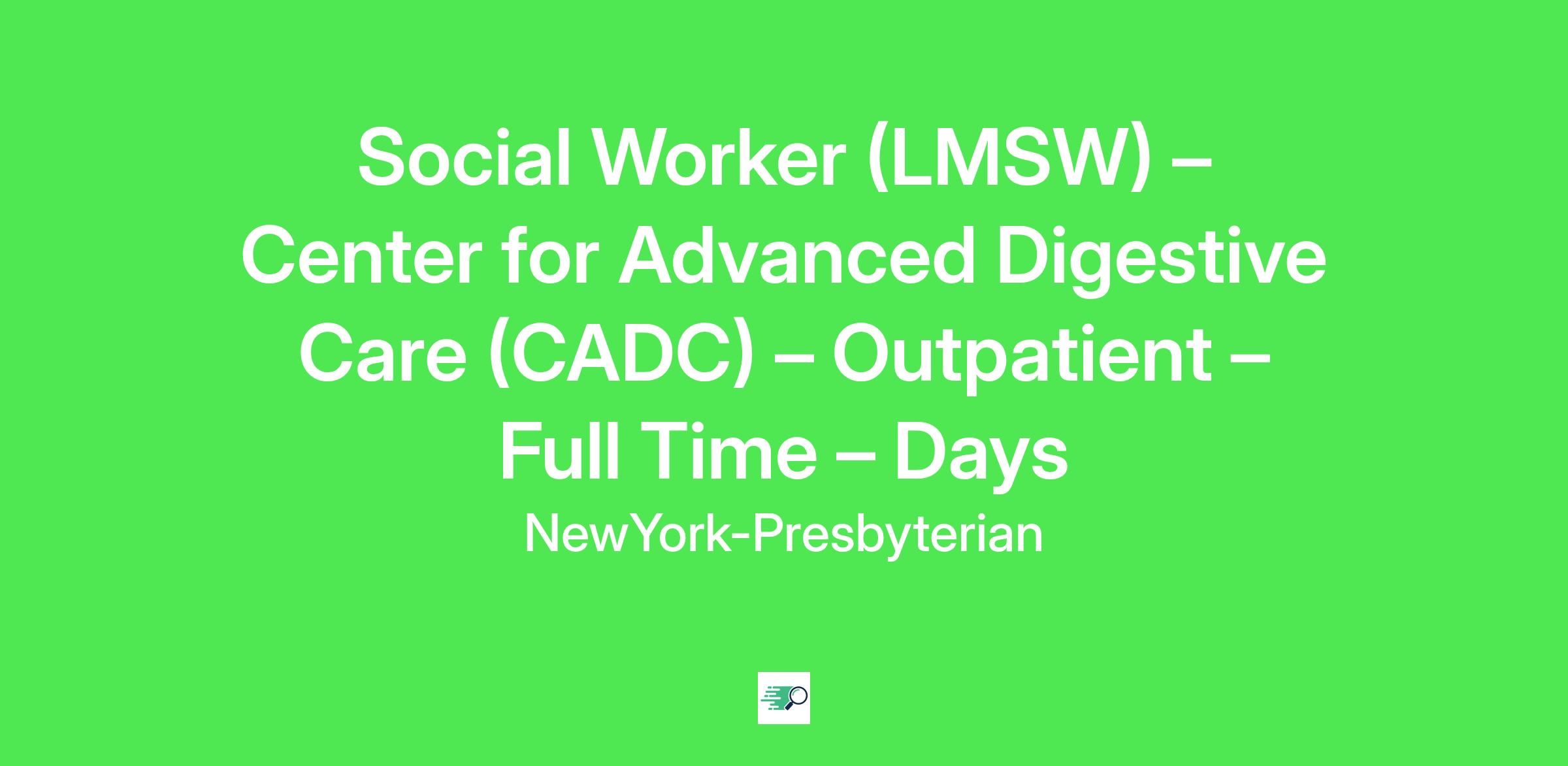 Social Worker (LMSW) – Center for Advanced Digestive Care (CADC) – Outpatient – Full Time – Days