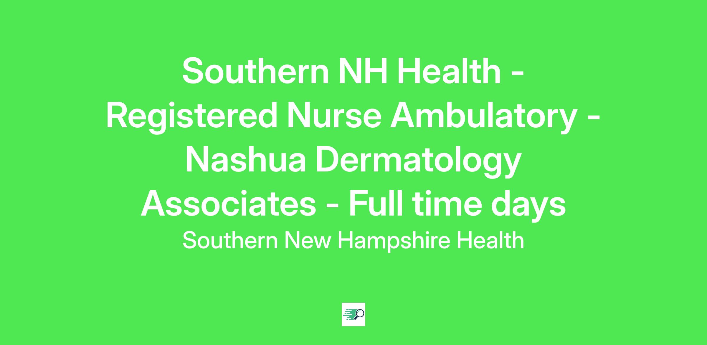 Title: Registered Nurse Ambulatory – Nashua Dermatology Associates