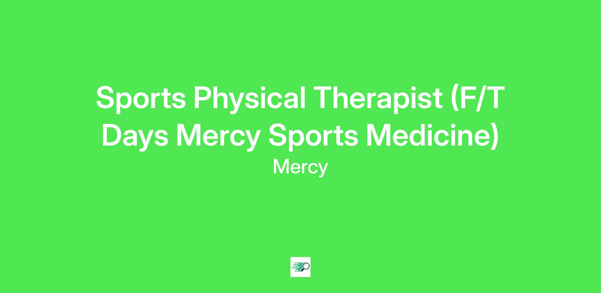 Physical Therapist - Athletic Trainer Mercy Sports Medicine Therapy 15945 Clayton Rd. Ballwin, MO 63011 Provide services regarding prevention, recognition, evaluation, immediate care and rehabilitation for all active individuals and sports-related injuries. The individual will also demonstrate professional development and responsibility. The incumbent will perform related duties as assigned. Required Qualification(s): Education: Graduate of an American Physical Therapy Association (APTA) accredited physical therapy program with a doctorate degree. If applicable, graduate of a Master's of Athletic Training from a CAATE accredited program. Licensure: State of practice license for Physical Therapy. State of practice licensure for athletic training. Certification: Must have one of the following: Board of Certification for the Athletic Trainer (BOC) Certification. Board Certified Sports Clinical Specialist (SCS) for Physical Therapy. Mercy Key Benefits: Tuition Reimbursement up to $2,000 for continuing education Health/Dental/Vision available after day one Annual contribution of $100 per month to eligible co-workers enrolled in the Dependent Care FSA Paid parental leave for new parents 401k with employer match Paid PTO for volunteering Competitive salary Future career growth! Find us at: Facebook | LinkedIn | Instagram | mercy.net | Mercy Careers EEO/AA/Minorities/Females/Disabled/Veterans