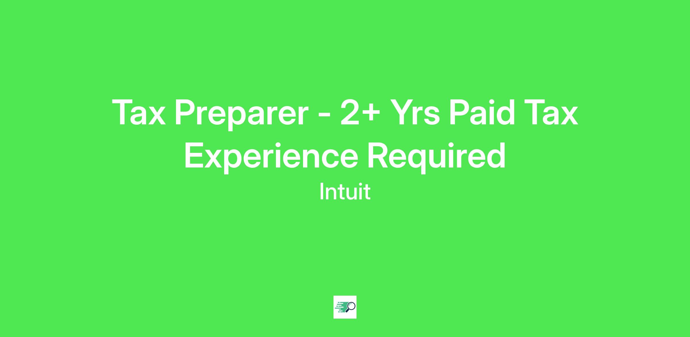 Tax Preparer - 2+ Yrs Paid Tax Experience Required
