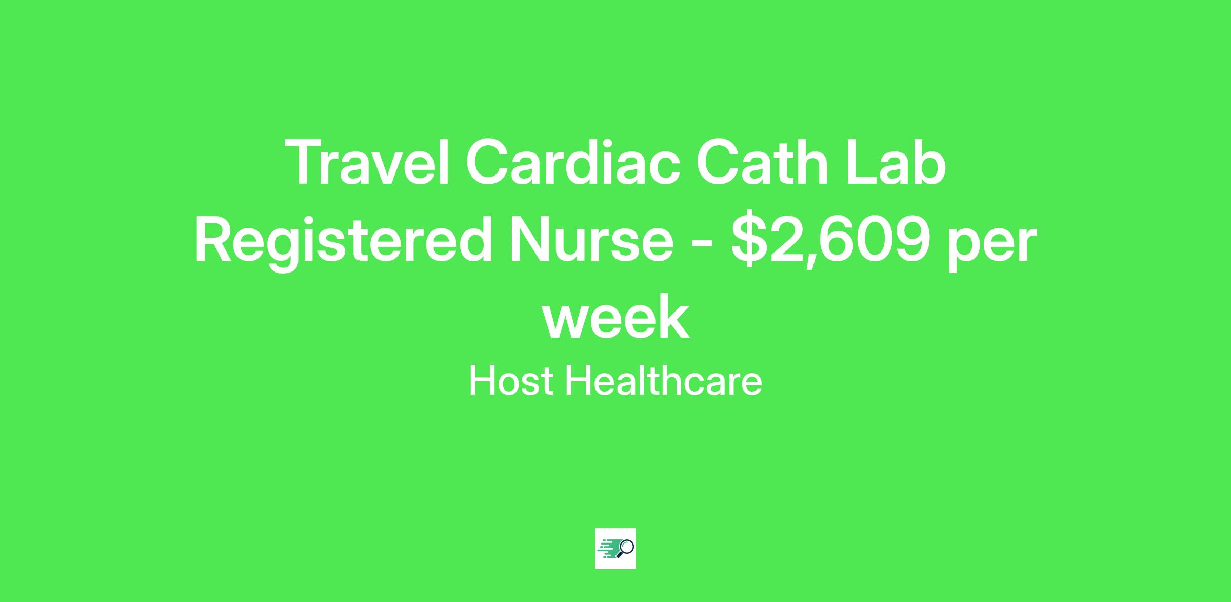Job Description & RequirementsHost Healthcare Job ID . Pay package is based on 8 hour shifts and 40 hours per week (subject to confirmation) with tax-free stipend amount to be determined. Posted job title: RN - Cardiac Cath Lab
