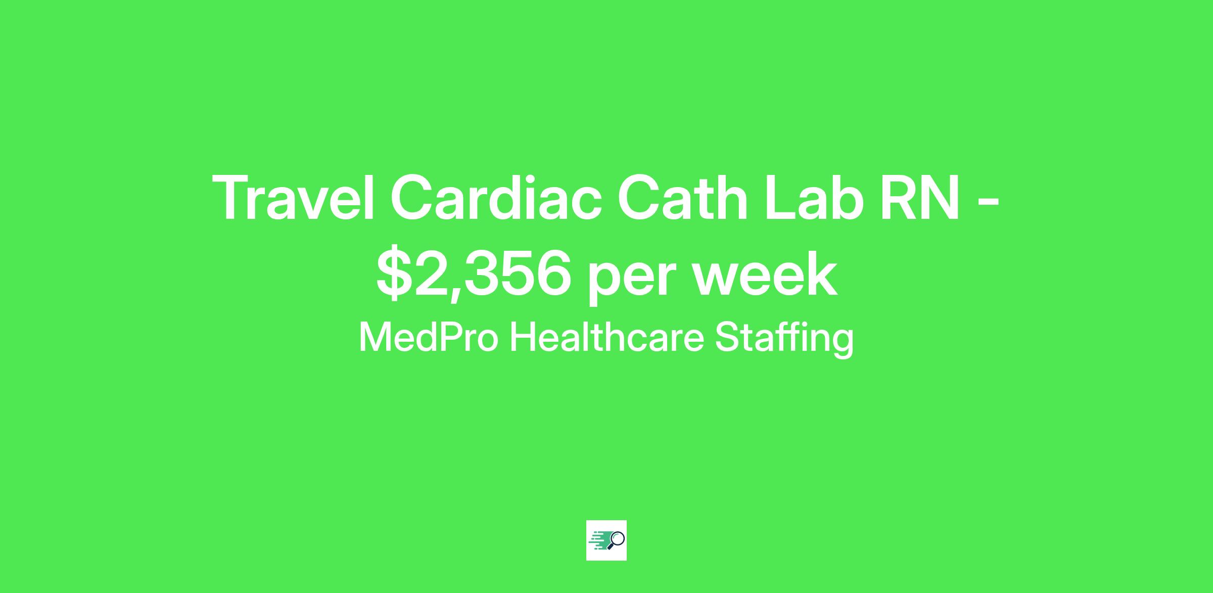 MedPro Job ID . Pay package is based on 8 hour shifts and 40 hours per week (subject to confirmation) with tax-free stipend amount to be determined. Posted job title: Cath Lab Registered Nurse Nursing: Cath Lab Nurse (Diagnostic).