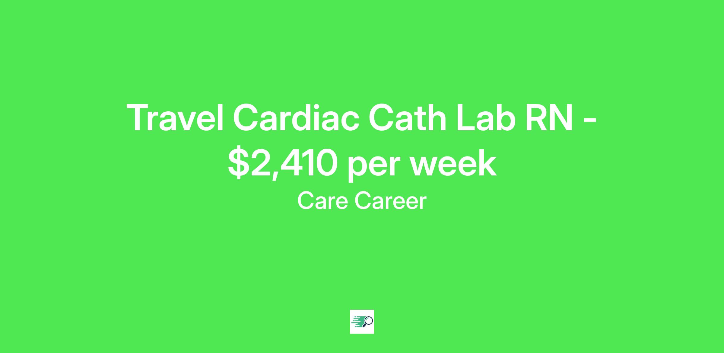 Care Career Job ID . Pay package is based on 8 hour shifts and 40.0 hours per week (subject to confirmation) with tax-free stipend amount to be determined. Posted job title: RN:Cath Lab,07:00:00-15:00:00