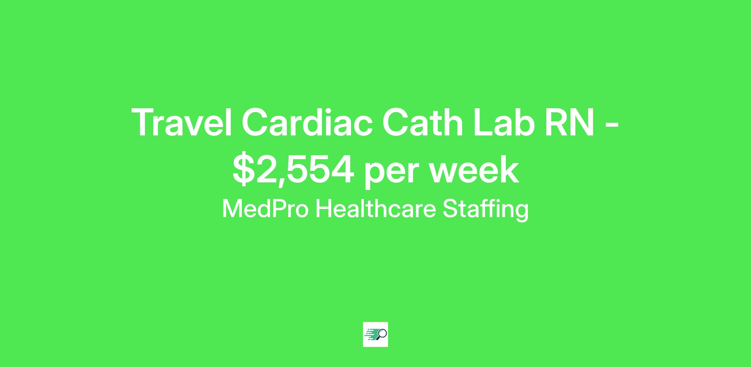 MedPro Job ID . Pay package is based on 10 hour shifts and 40 hours per week (subject to confirmation) with tax-free stipend amount to be determined. Posted job title: Cath Lab Registered Nurse Nursing: Cath Lab Nurse (Diagnostic).