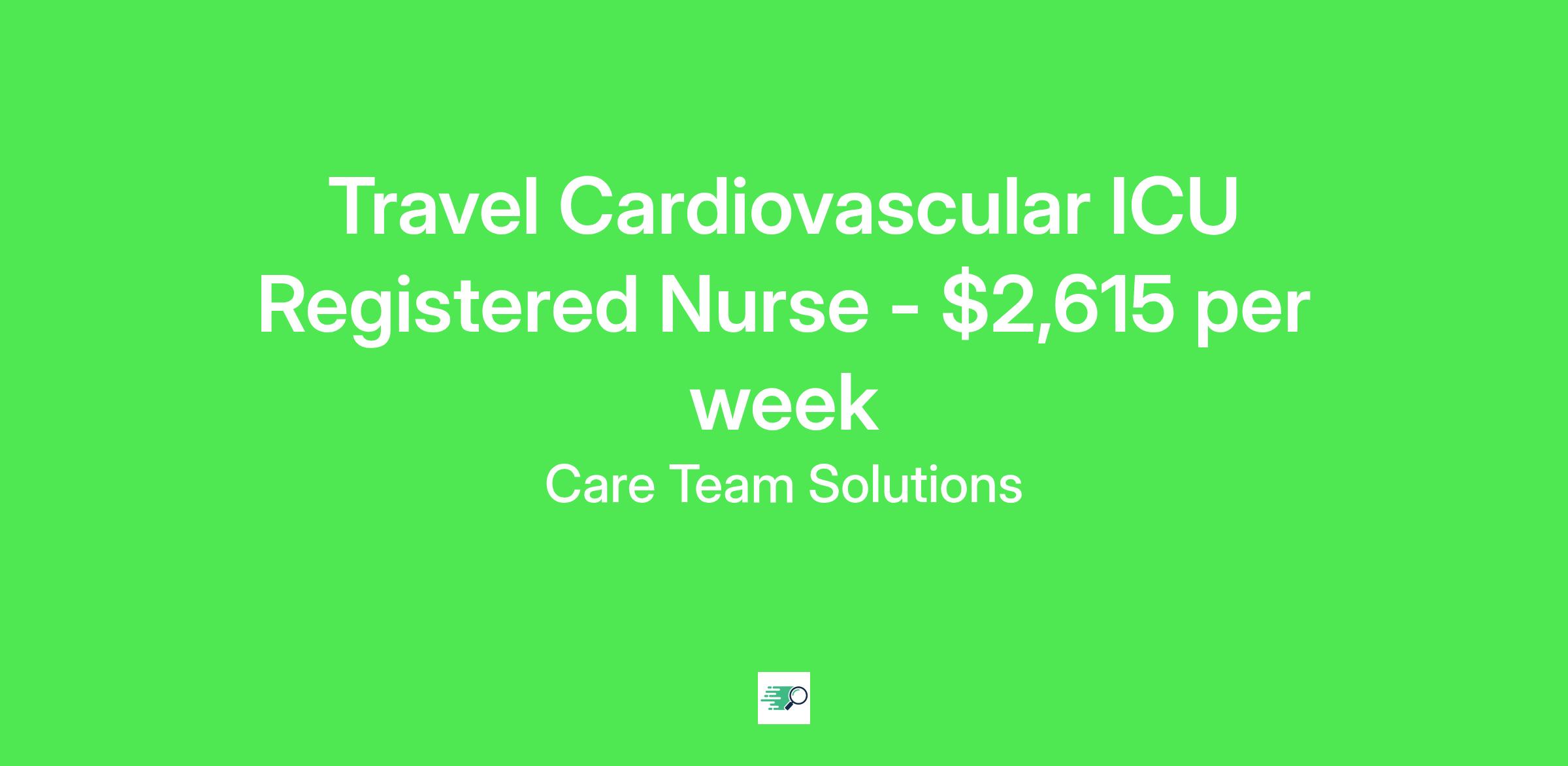 Details: Must Have 2+ Years of recent Cardiovascular Intensive Care Unit experience.
