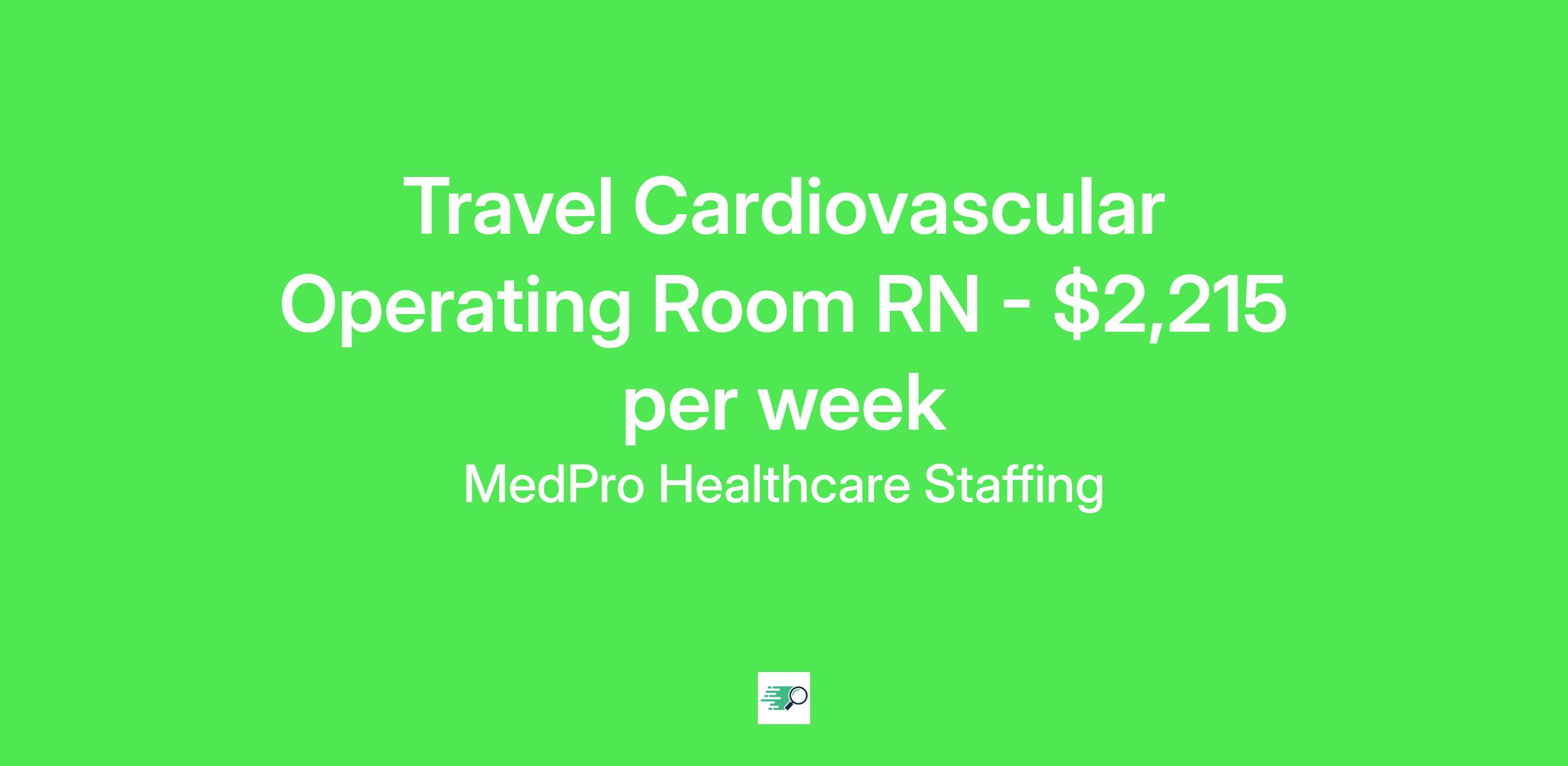 Job Description & RequirementsMedPro Healthcare Staffing , a Joint Commission-certified staffing agency, is seeking a quality CVOR registered nurse (RN) for a travel assignment with one of our top healthcare clients.