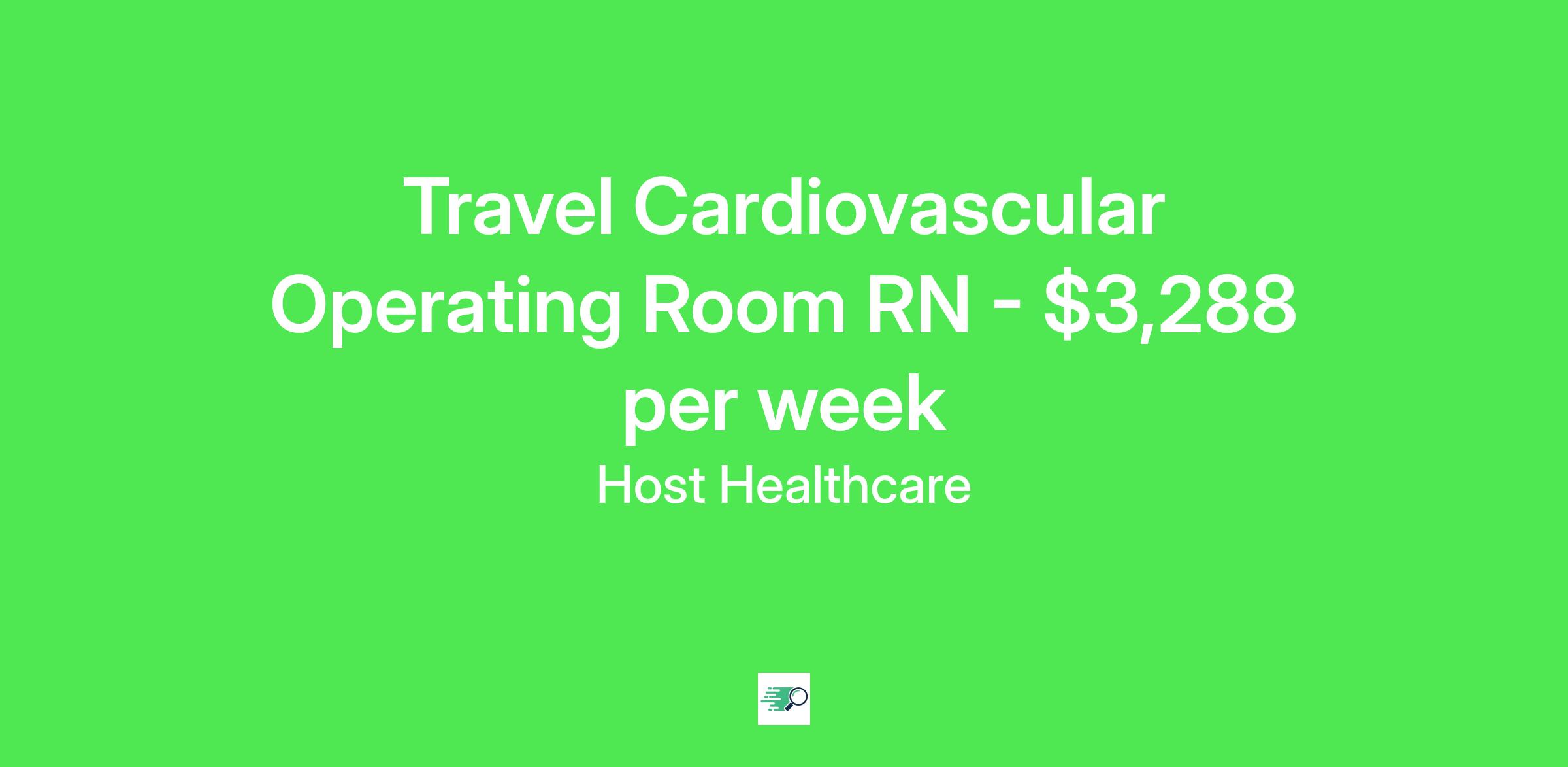 Job Description & RequirementsHost Healthcare Job ID . Pay package is based on 12 hour shifts and 36 hours per week (subject to confirmation) with tax-free stipend amount to be determined. Posted job title: RN - CVOR
