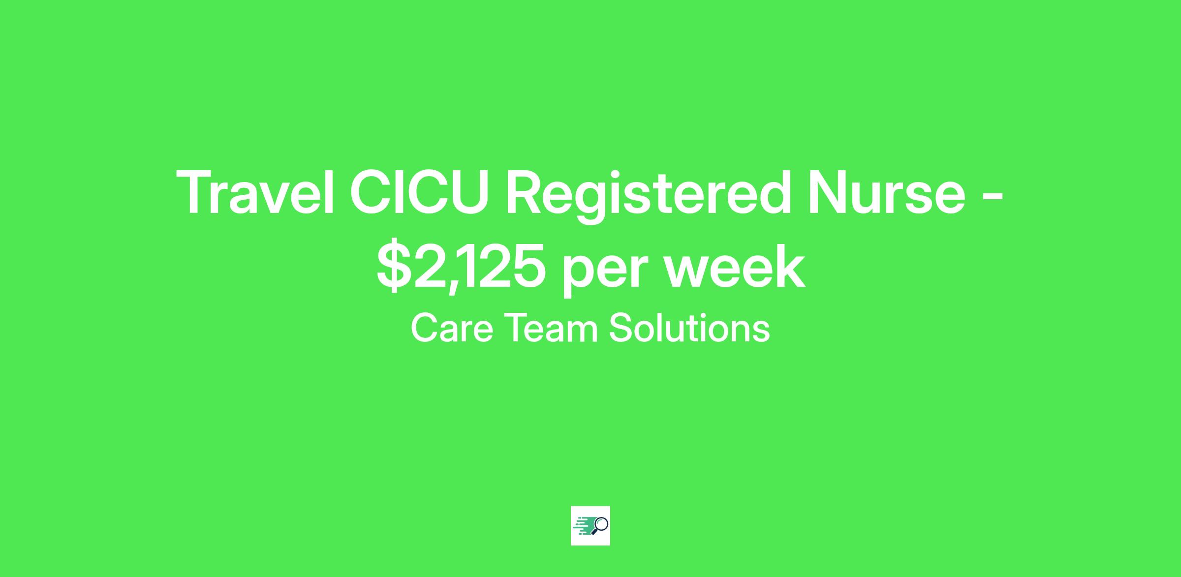 Care Team Solutions Job ID . Pay package is based on 12 hour shifts and 36 hours per week (subject to confirmation) with tax-free stipend amount to be determined. Posted job title: CVICU Registered Nurse