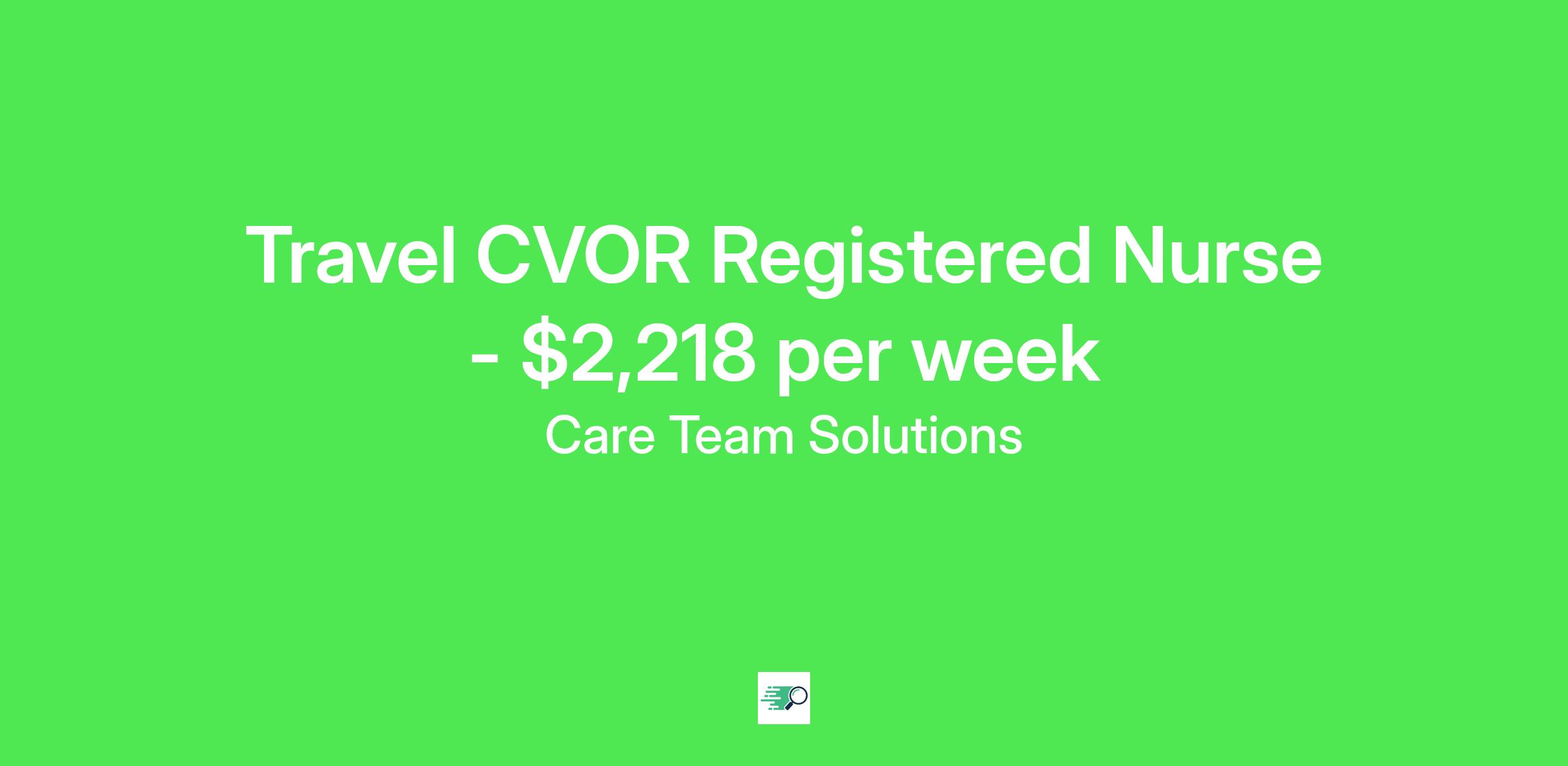 Care Team Solutions Job ID . Pay package is based on 12 hour shifts and 36 hours per week (subject to confirmation) with tax-free stipend amount to be determined. Posted job title: CVOR Registered Nurse