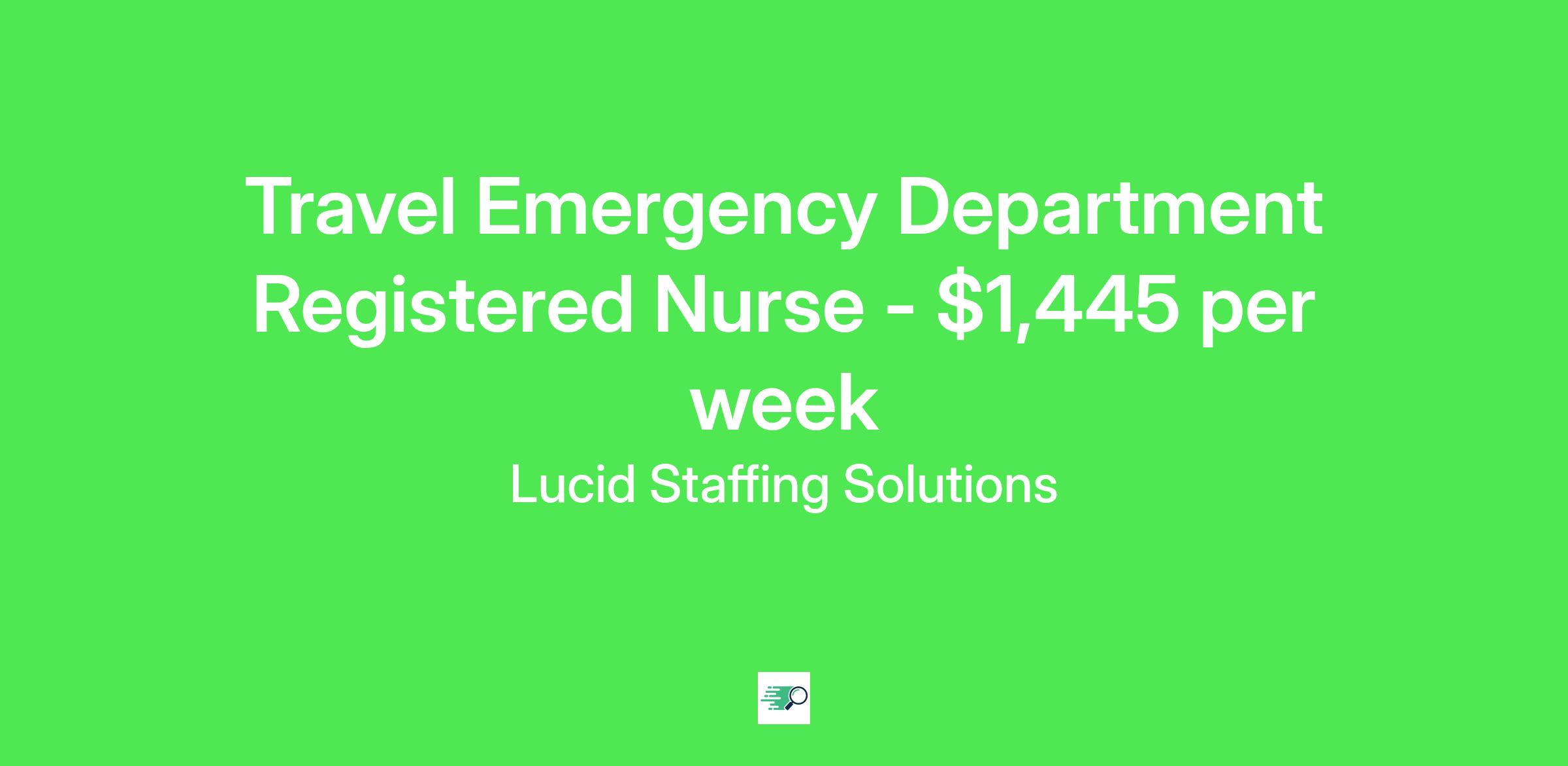 Lucid Staffing Solutions Job ID . Pay package is based on 12 hour shifts and 24.0 hours per week (subject to confirmation) with tax-free stipend amount to be determined. Posted job title: Registered Nurse (RN):ER,19:00:00-07:00:00