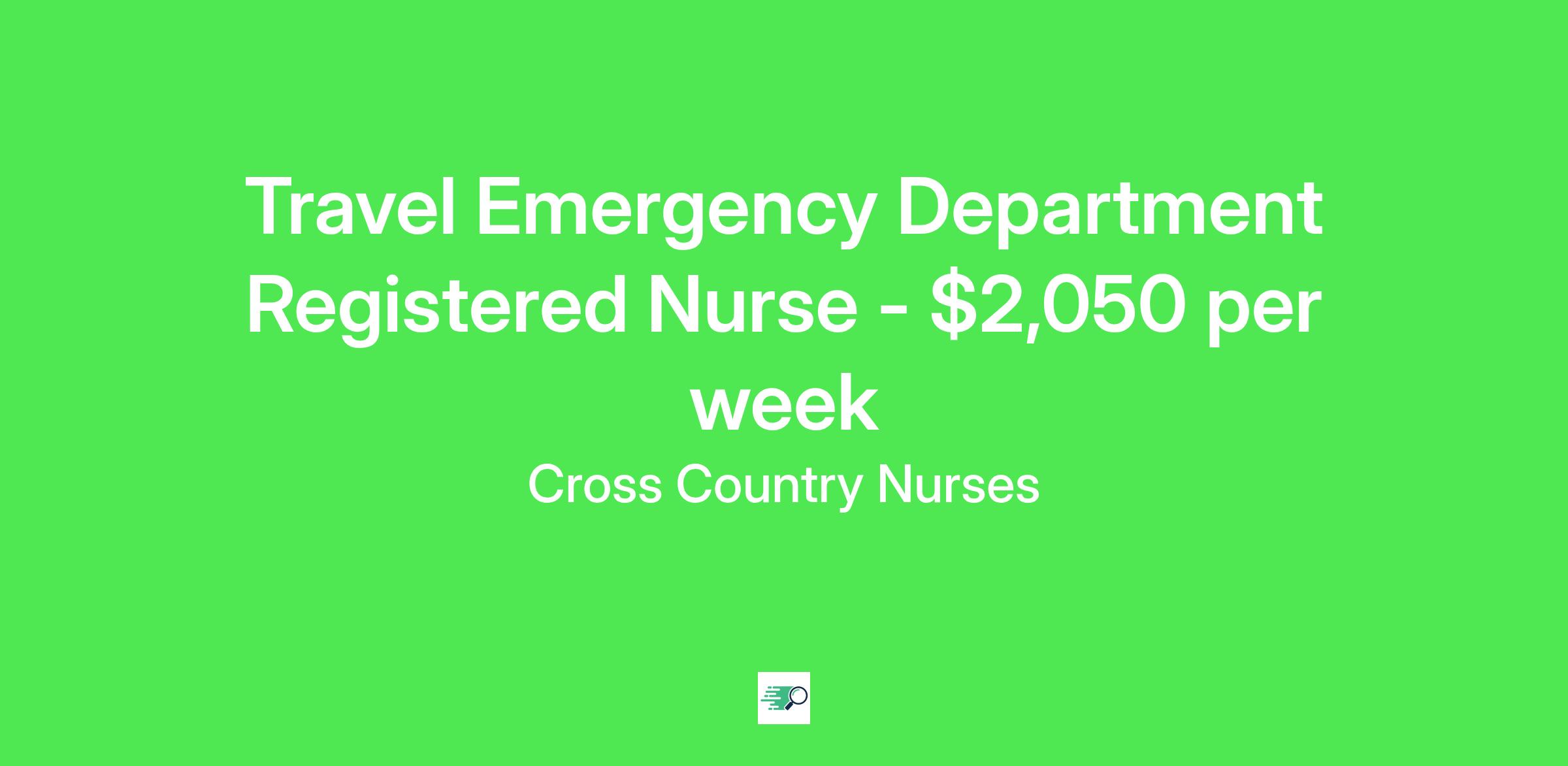 Minimum RequirementsCross Country Job ID . Pay package is based on 12 hour shifts and 36 hours per week (subject to confirmation) with tax-free stipend amount to be determined. Posted job title: Registered Nurse / Emergency Room