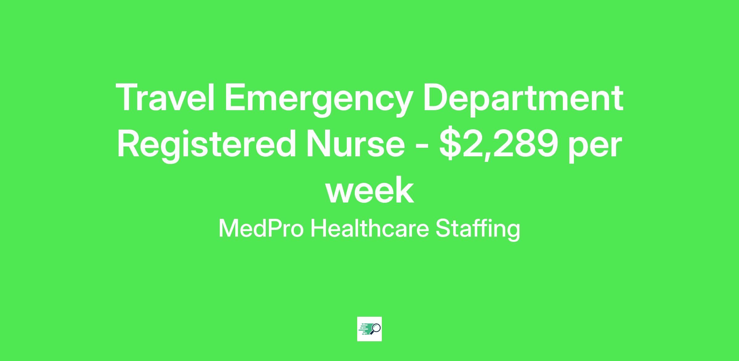 MedPro Job ID . Pay package is based on 12 hour shifts and 36 hours per week (subject to confirmation) with tax-free stipend amount to be determined. Posted job title: Emergency Room Registered Nurse Nursing: Emergency Room.