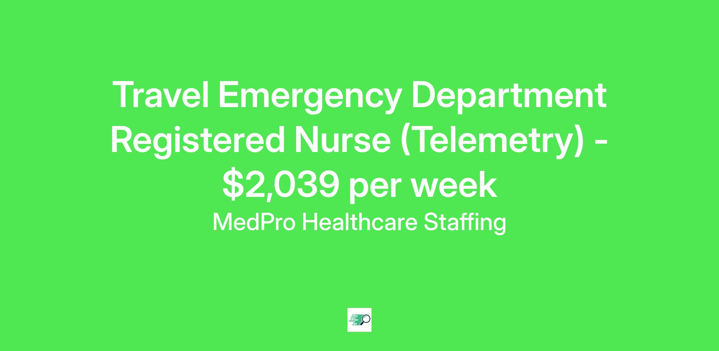 MedPro Job ID . Pay package is based on 12 hour shifts and 36 hours per week (subject to confirmation) with tax-free stipend amount to be determined. Posted job title: Emergency Room Registered Nurse Nursing: Emergency Room.