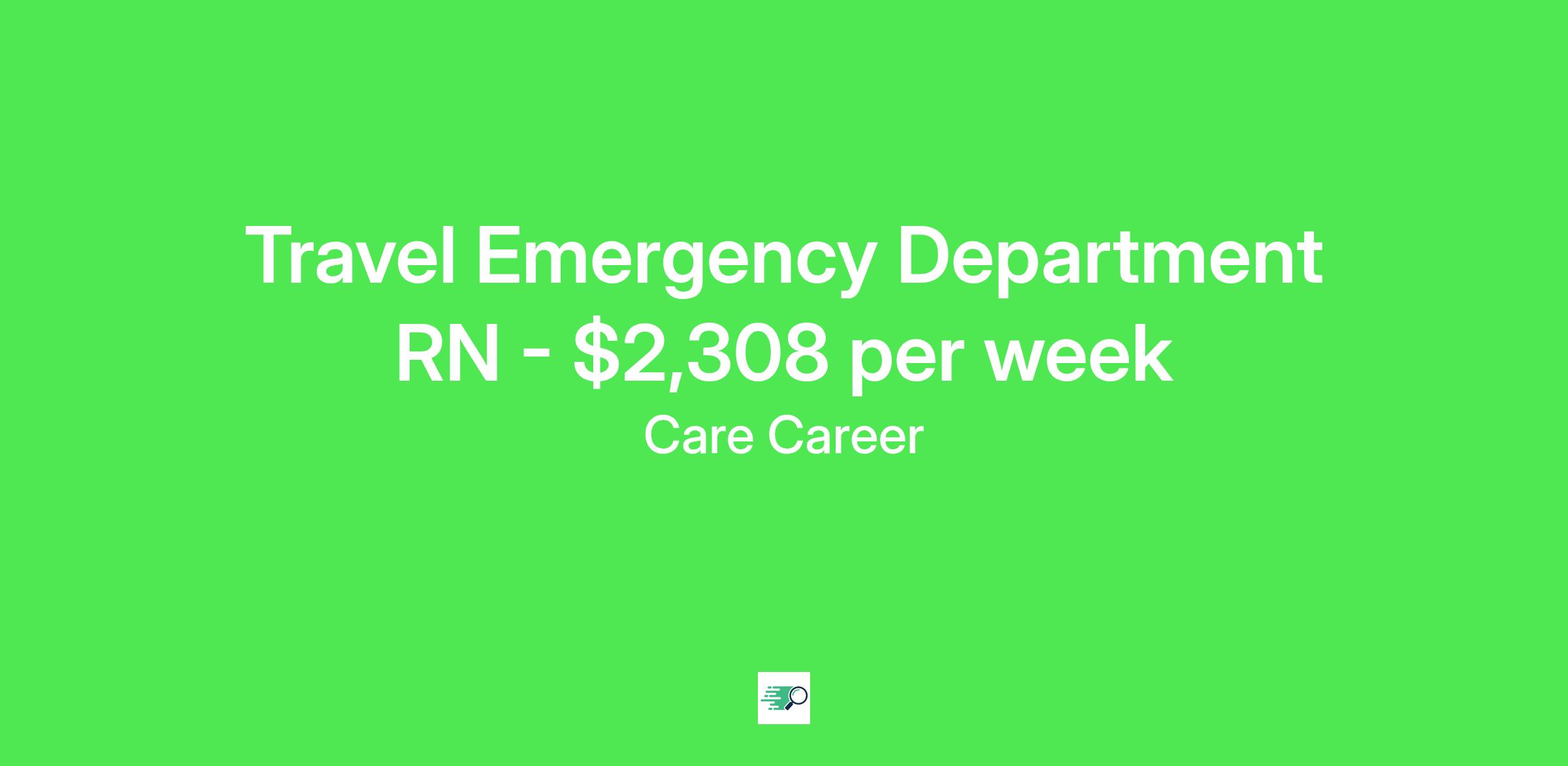 Care Career Job ID . Pay package is based on 12 hour shifts and 36.0 hours per week (subject to confirmation) with tax-free stipend amount to be determined. Posted job title: RN:ER,19:00:00-07:00:00