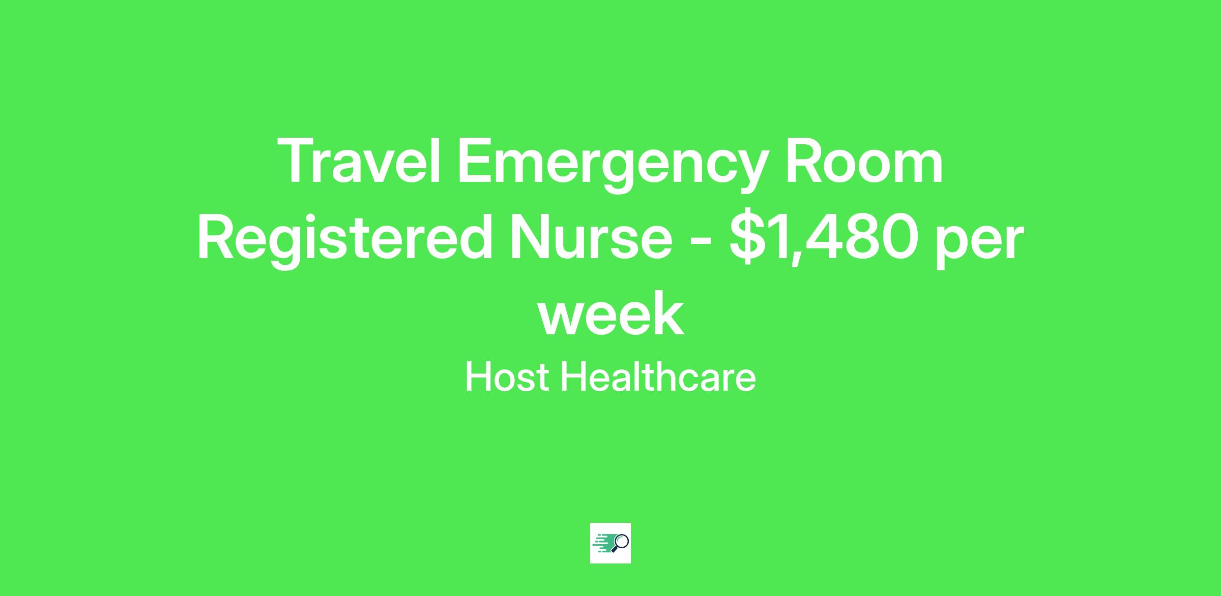 Job Description & RequirementsHost Healthcare Job ID . Pay package is based on 12 hour shifts and 36 hours per week (subject to confirmation) with tax-free stipend amount to be determined. Posted job title: RN - Emergency Room