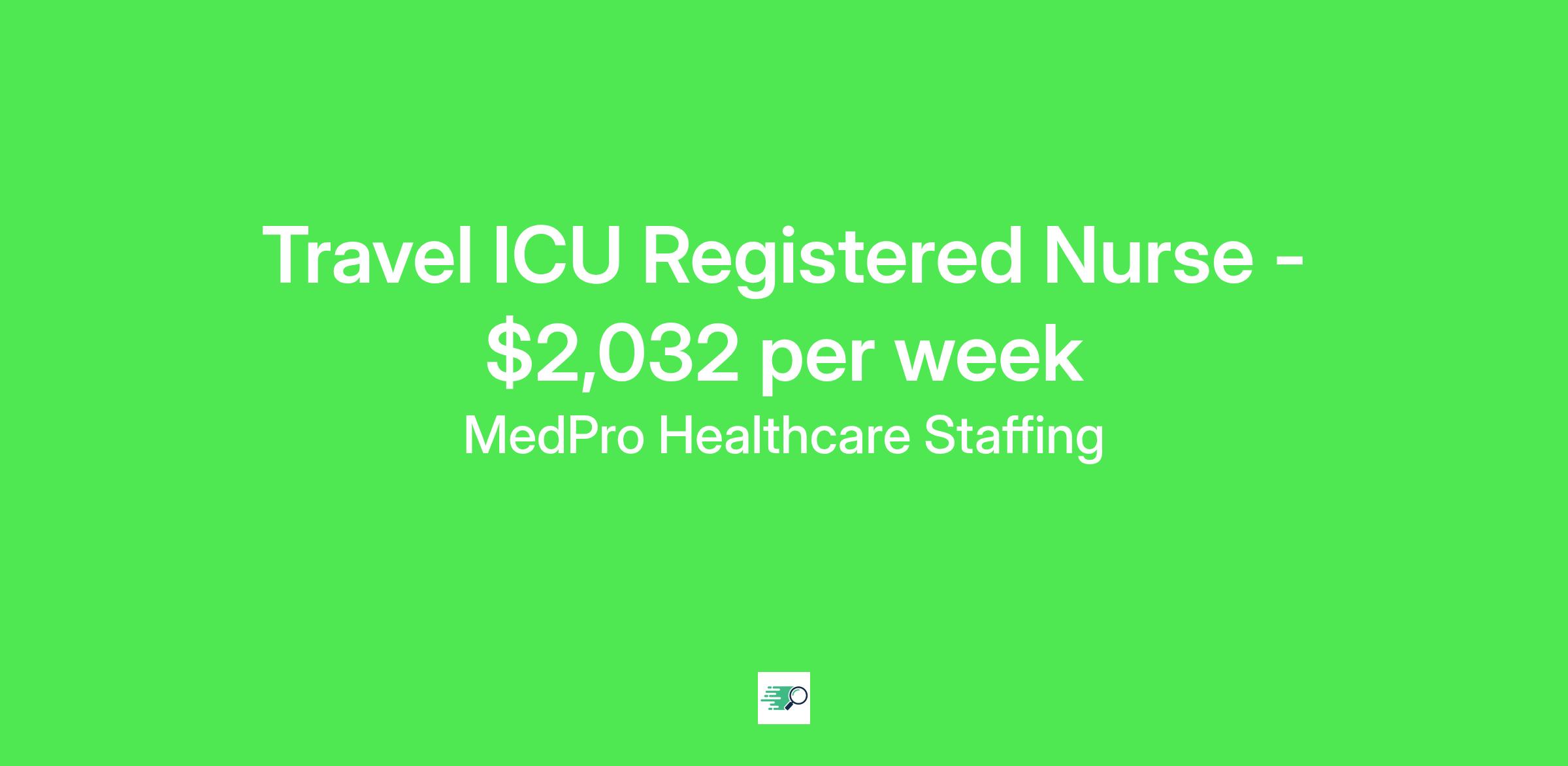MedPro Job ID . Pay package is based on 12 hour shifts and 36 hours per week (subject to confirmation) with tax-free stipend amount to be determined. Posted job title: ICU/CCU Registered Nurse Nursing: ICU - Intensive Care.