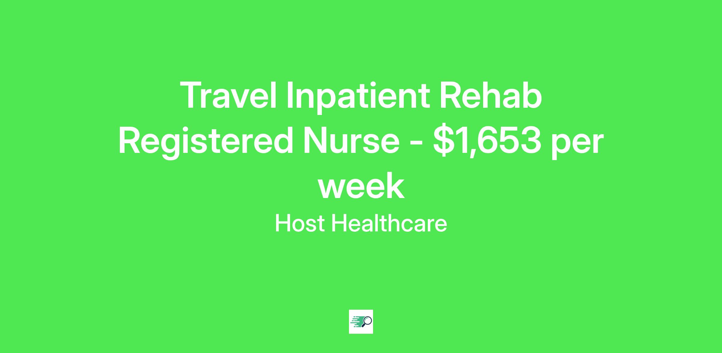 Job Description & RequirementsHost Healthcare Job ID . Pay package is based on 12 hour shifts and 36 hours per week (subject to confirmation) with tax-free stipend amount to be determined. Posted job title: RN - Rehab