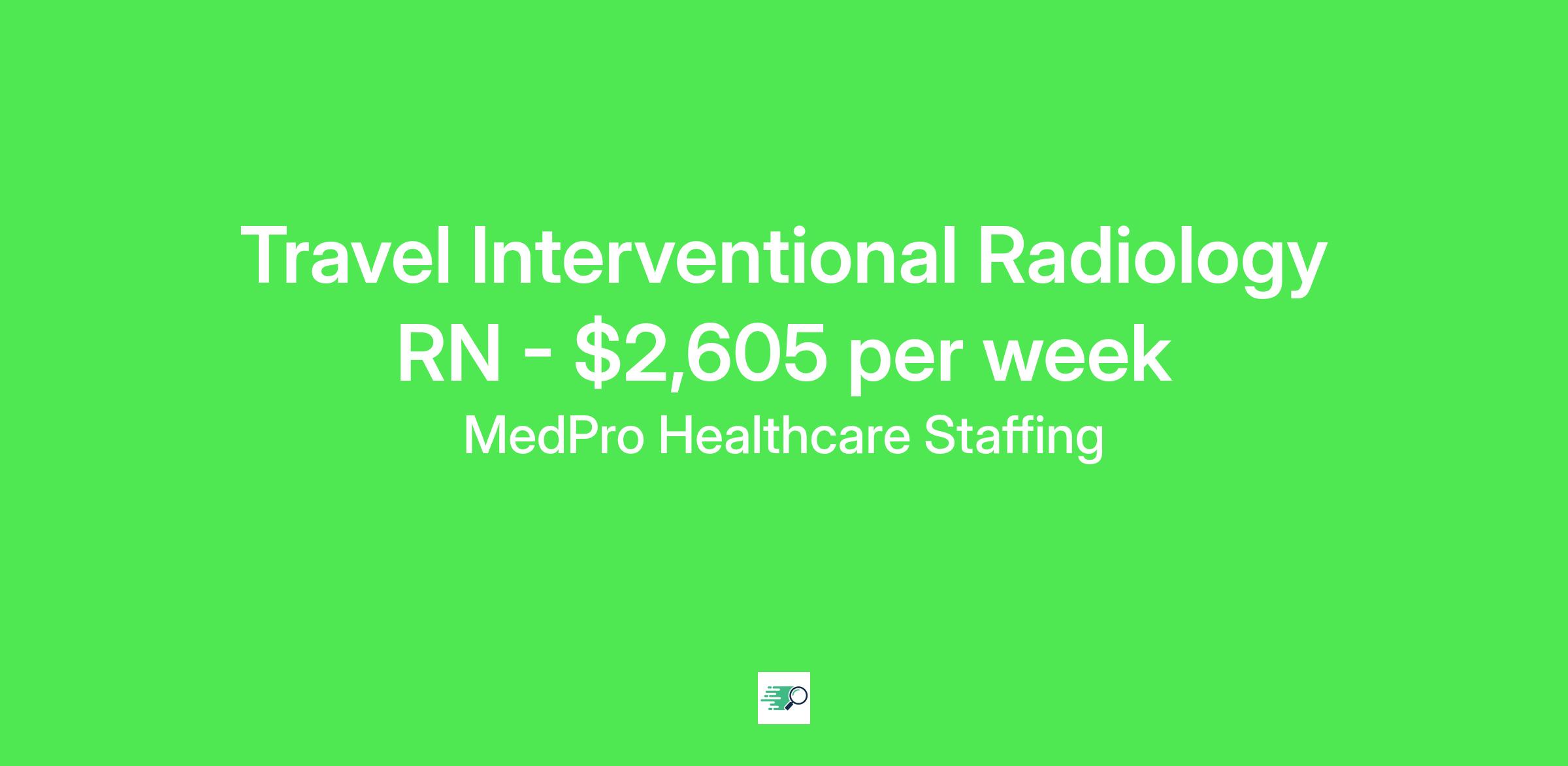 Job Description & RequirementsMedPro Healthcare Staffing , a Joint Commission-certified staffing agency, is seeking a quality Interventional Radiology Registered Nurse (RN) for a travel assignment with one of our top healthcare clients.