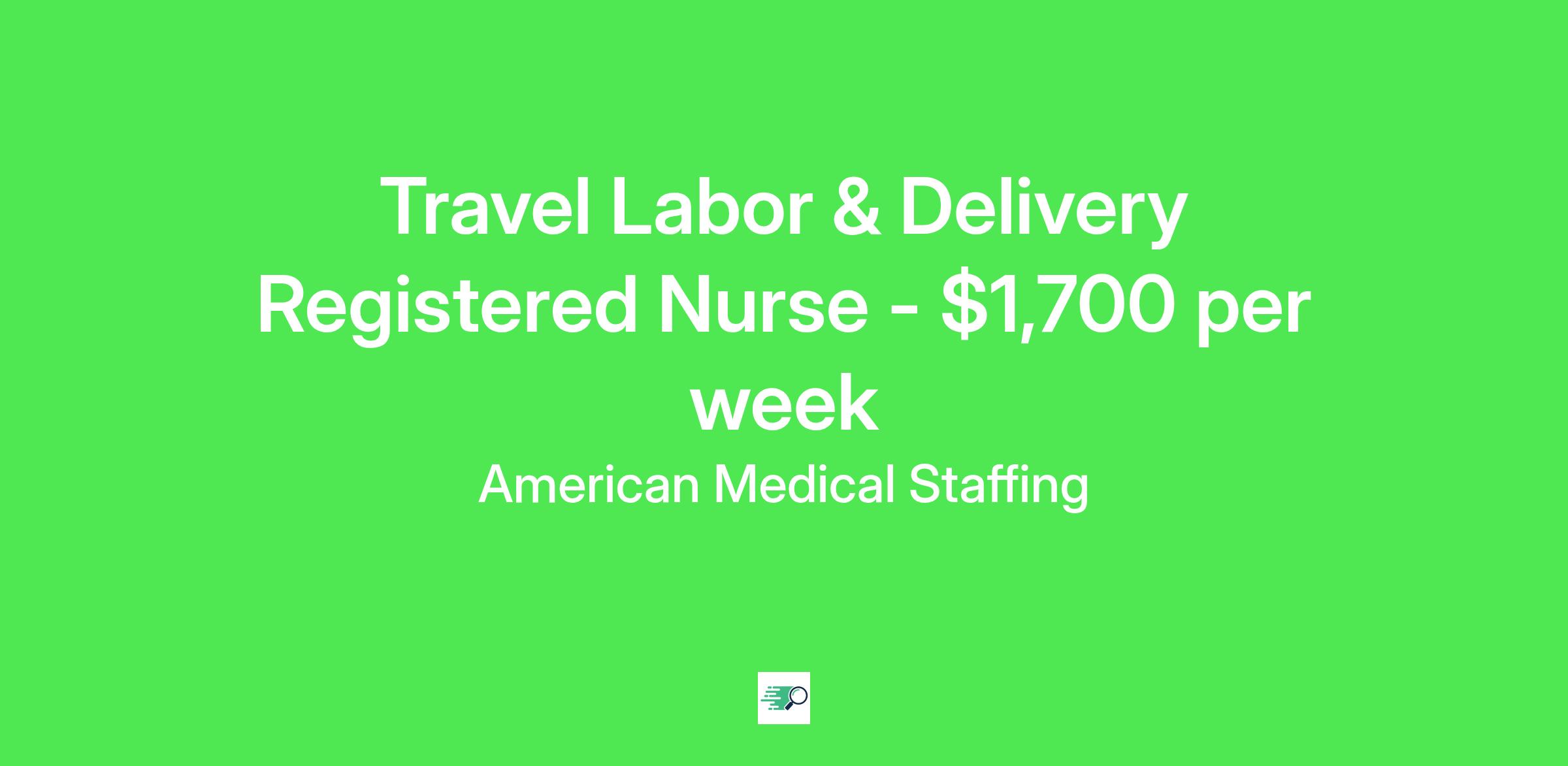Job Description & RequirementsWe're living in the new normal. Lives and careers look different today. So why shouldn't you have a role that delivers excitement, fewer restrictions, and brings you closer to loved ones? At American Medical Staffing (AMS), we believe in supporting the pioneers who embody the sense of adventure each new placement brings and we're looking for a RN: L&D for our Hospital contract assignment.