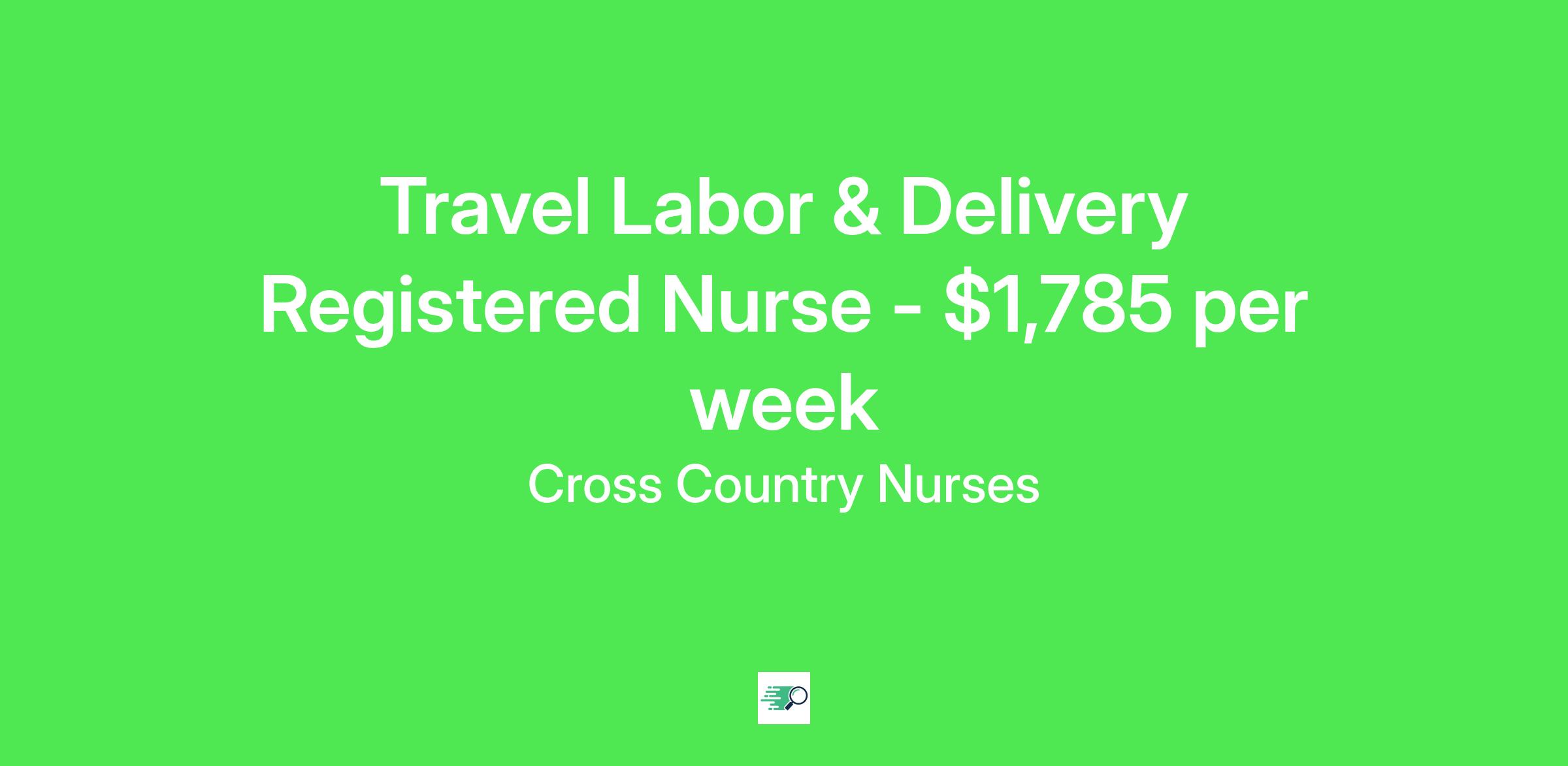 Minimum RequirementsCross Country Job ID . Pay package is based on 12 hour shifts and 36 hours per week (subject to confirmation) with tax-free stipend amount to be determined. Posted job title: Registered Nurse / Labor And Delivery Department