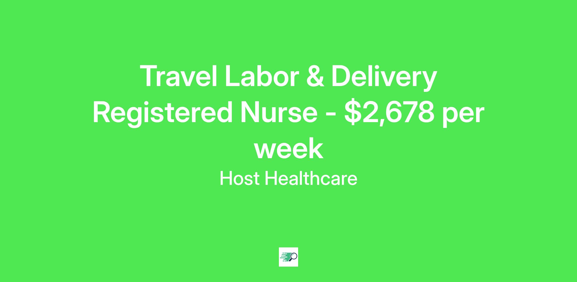 Job Description & RequirementsHost Healthcare Job ID . Pay package is based on 12 hour shifts and 36 hours per week (subject to confirmation) with tax-free stipend amount to be determined. Posted job title: RN - Labor and Delivery