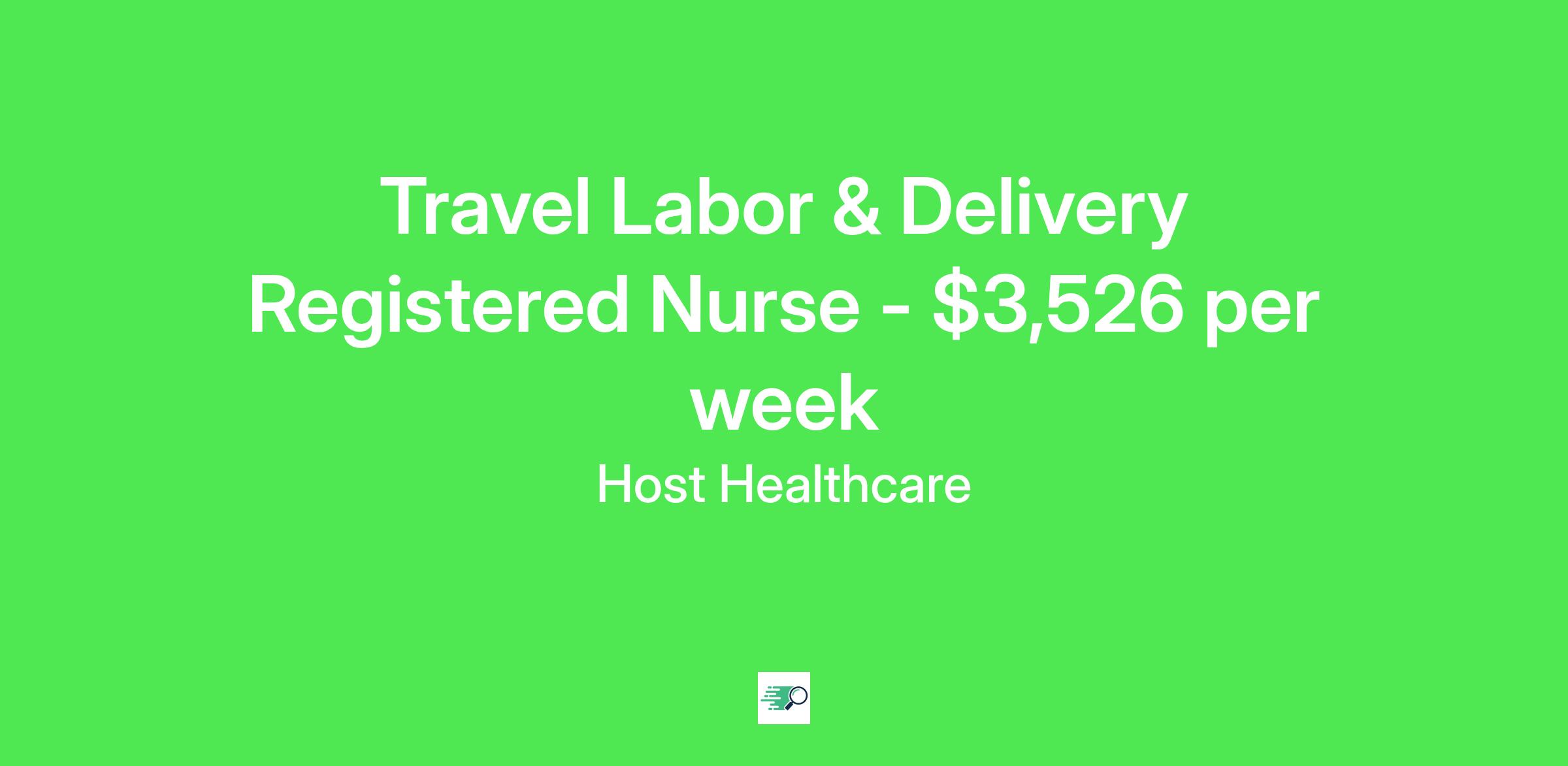 Job Description & RequirementsHost Healthcare Job ID . Pay package is based on 12 hour shifts and 36 hours per week (subject to confirmation) with tax-free stipend amount to be determined. Posted job title: RN - Labor and Delivery
