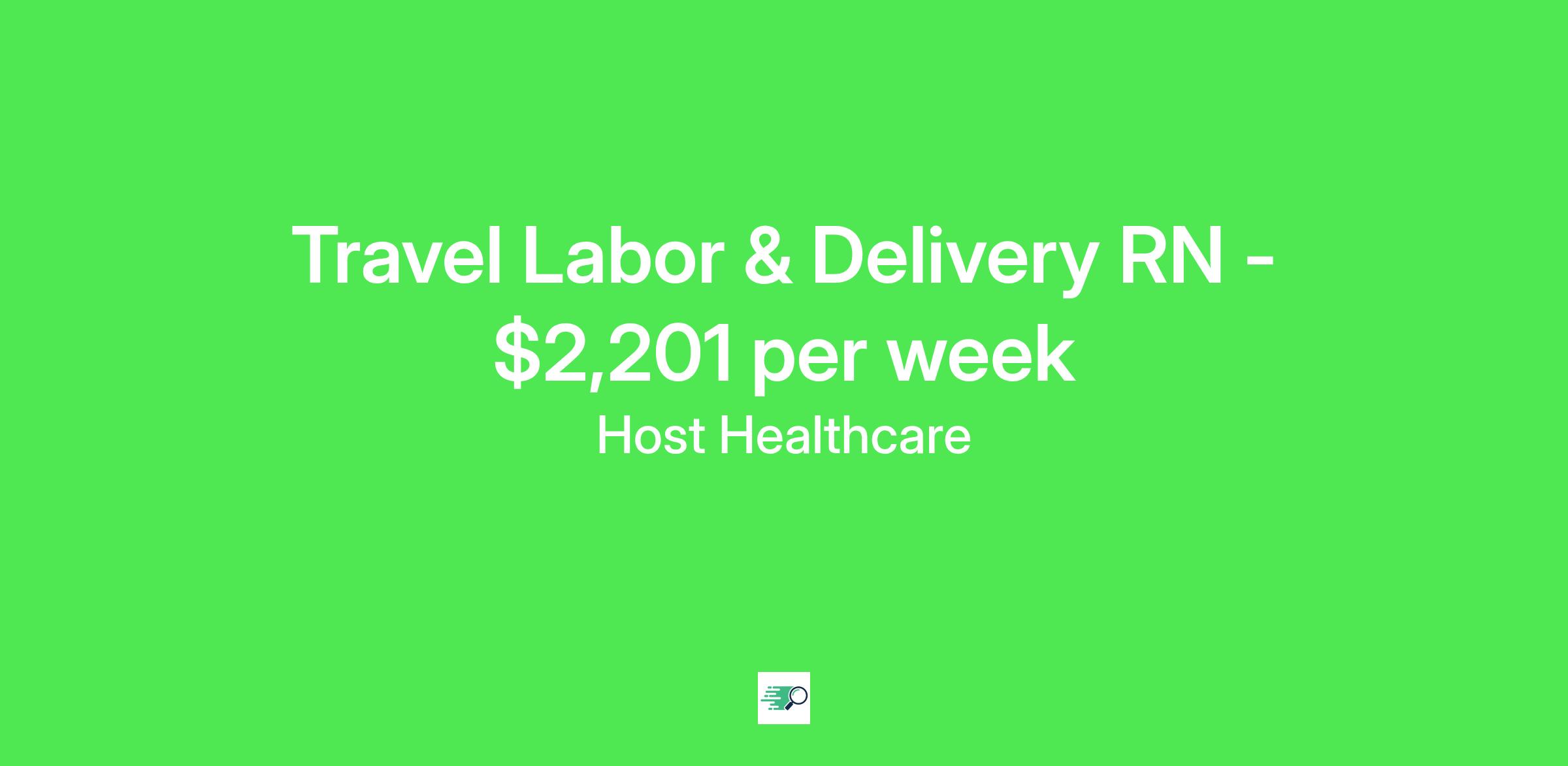 Job Description & RequirementsHost Healthcare Job ID . Pay package is based on 9 hour shifts and 36 hours per week (subject to confirmation) with tax-free stipend amount to be determined. Posted job title: RN - Labor and Delivery