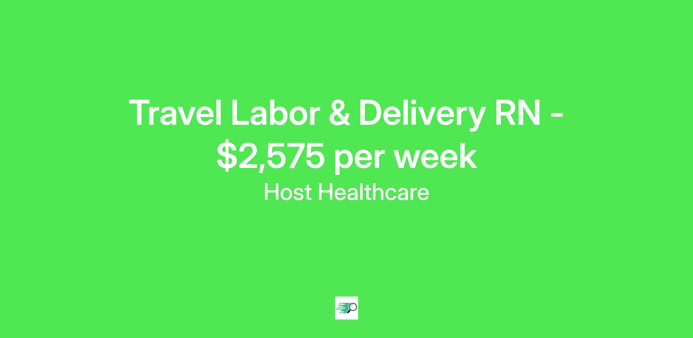 Job Description & RequirementsHost Healthcare Job ID . Pay package is based on 12 hour shifts and 36 hours per week (subject to confirmation) with tax-free stipend amount to be determined. Posted job title: RN - Labor and Delivery