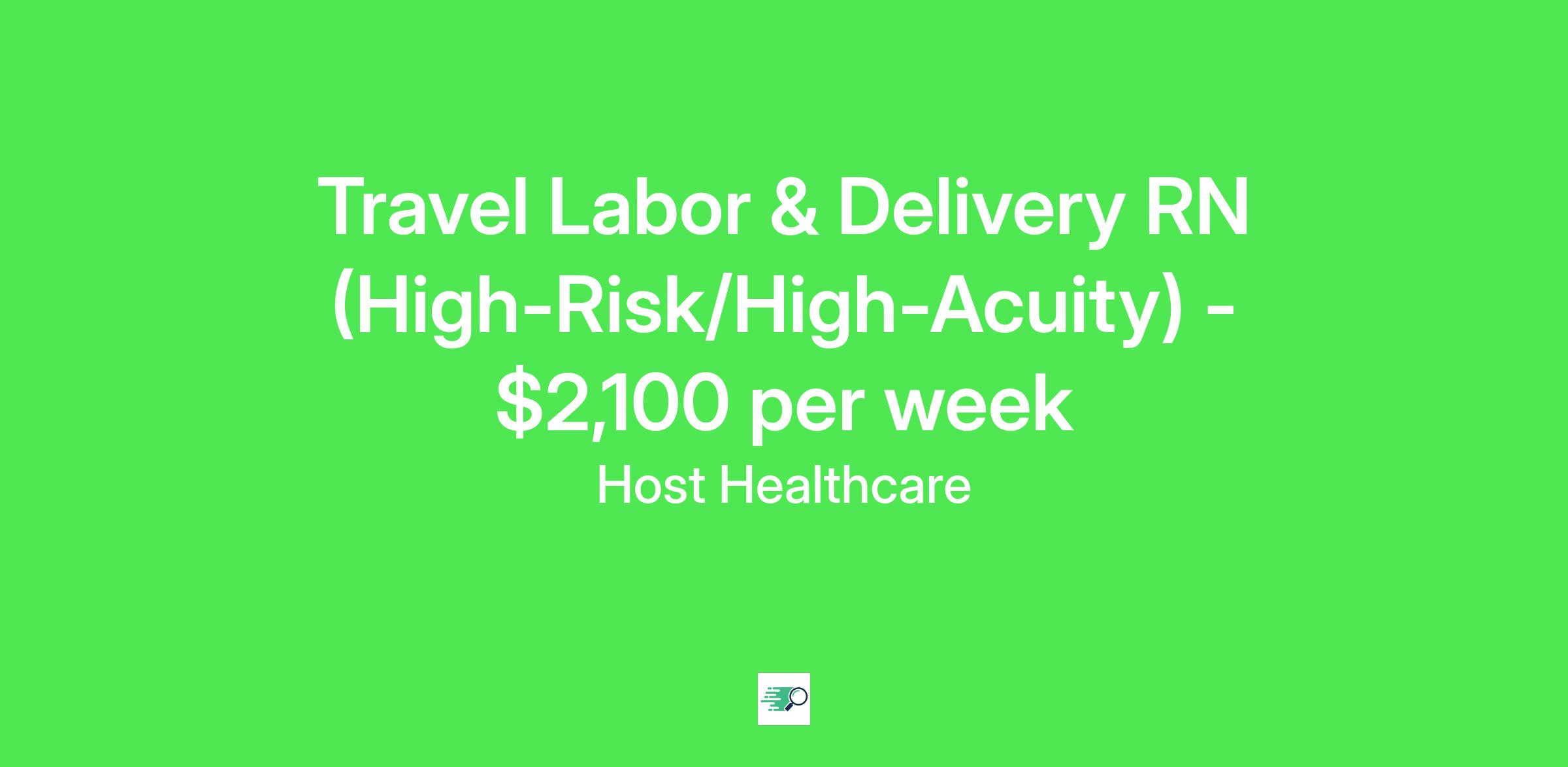 Travel Labor & Delivery RN (High-Risk/High-Acuity) - $2,100 per week
