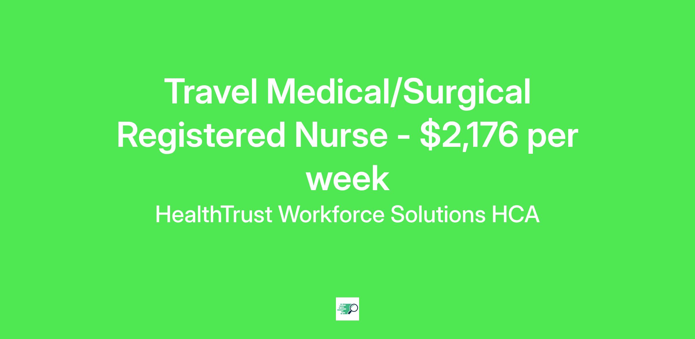 HealthTrust Workforce Solutions HCA is seeking a travel nurse RN Med Surg for a travel nursing job in Pulaski, Tennessee.