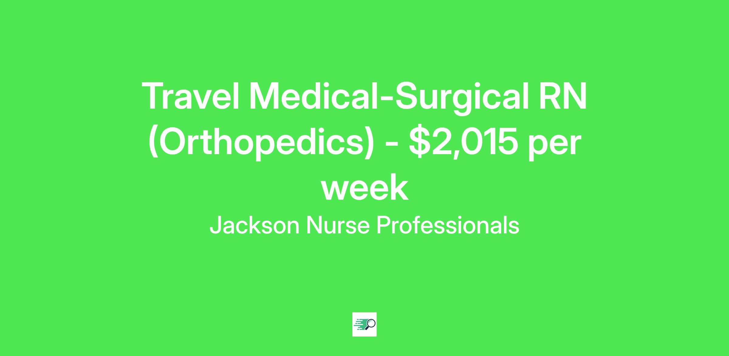 About Jackson Nurse ProfessionalsFilling critical needs in patient care, Jackson Nurse Professionals delivers cost-effective travel nurse staffing solutions to over 500 hospitals, outpatient clinics, and home health clients nationwide. Awarded Best of Staffing - Talent and Client 2024, and rated as a Top Workplace 2023 by the Orlando Sentinel, Jackson Nurse Professionals goes the extra mile to provide travel nurses the career they deserve, while providing clients with a large range of highly skilled nurses to fill short, long-term, and temporary assignments.