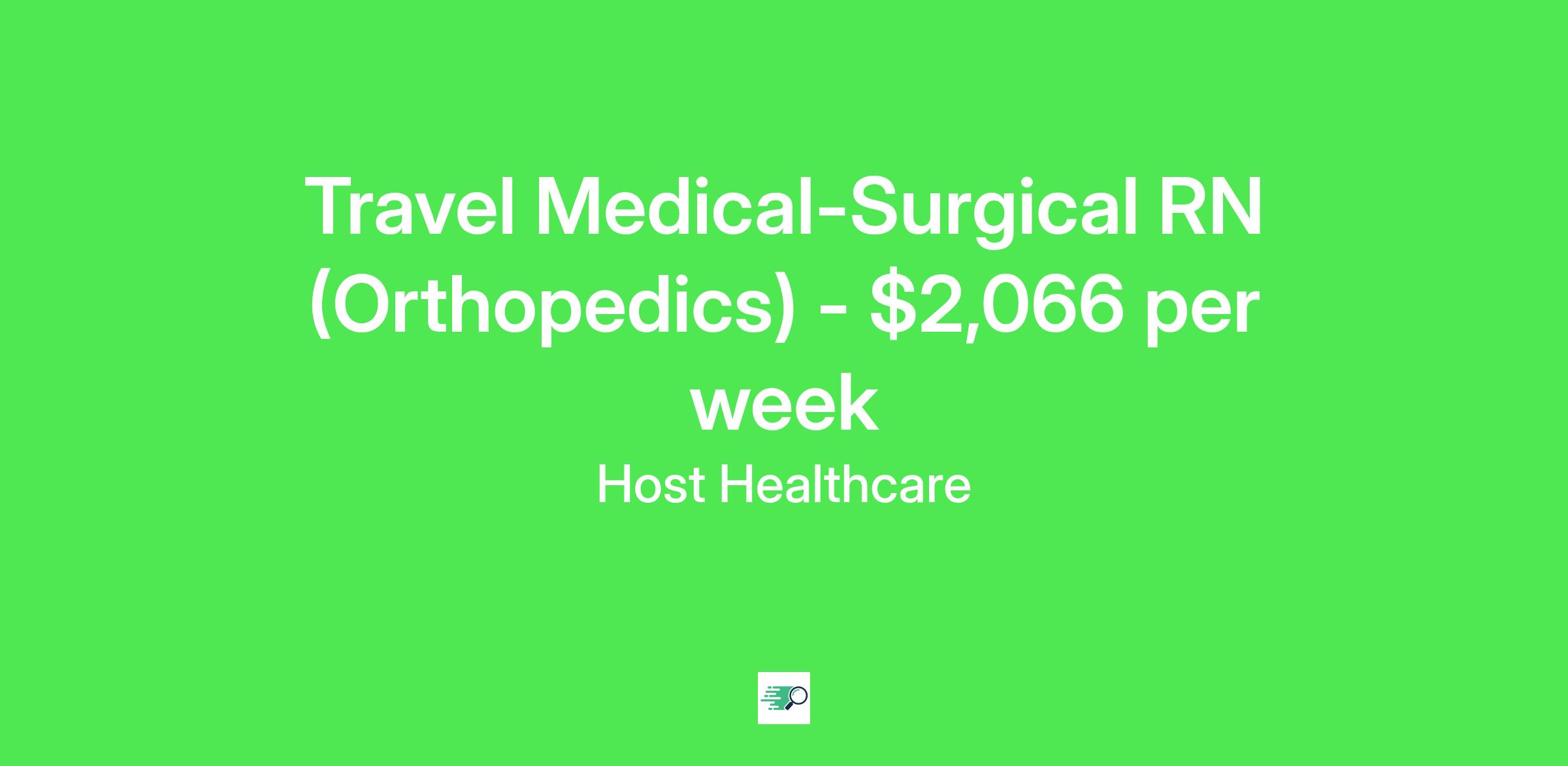 Job Description & RequirementsHost Healthcare Job ID . Pay package is based on 12 hour shifts and 36 hours per week (subject to confirmation) with tax-free stipend amount to be determined. Posted job title: RN - Medical-Surgical