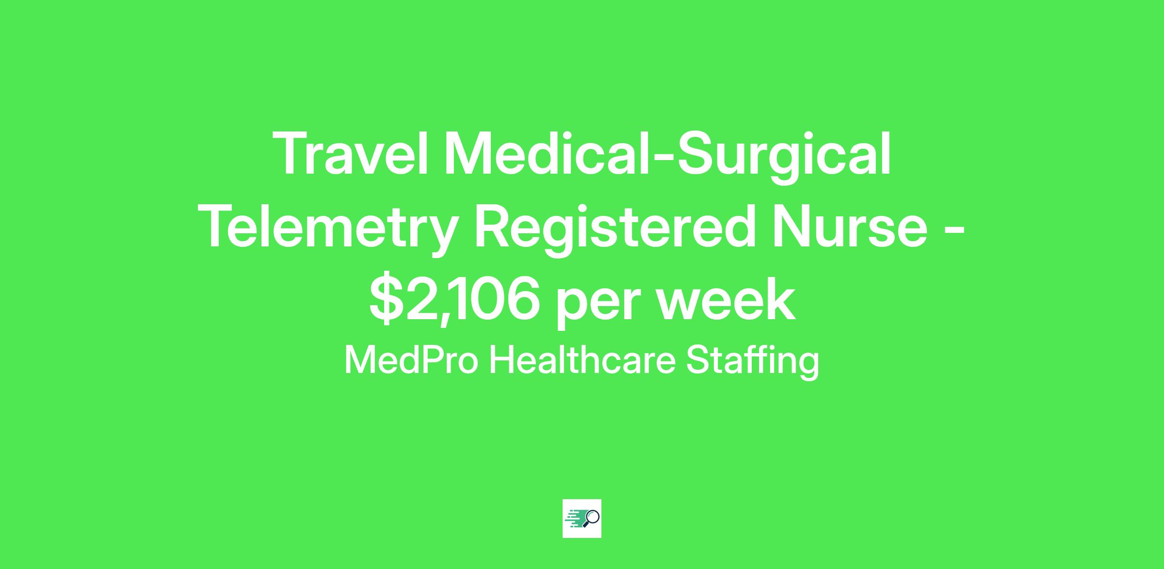 MedPro Job ID . Pay package is based on 12 hour shifts and 36 hours per week (subject to confirmation) with tax-free stipend amount to be determined. Posted job title: Med-Surg/Telemetry Registered Nurse Nursing: Med Surg/Tele.