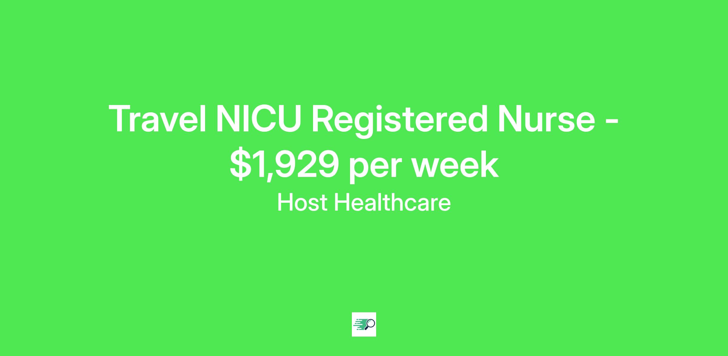 Job Description & RequirementsHost Healthcare Job ID . Pay package is based on 12 hour shifts and 36 hours per week (subject to confirmation) with tax-free stipend amount to be determined. Posted job title: RN - NICU