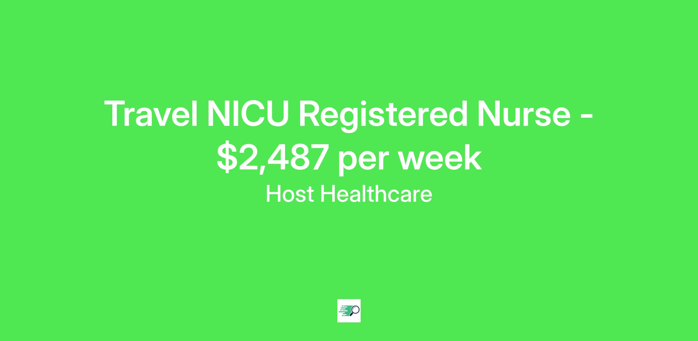 Job Description & RequirementsHost Healthcare Job ID . Pay package is based on 12 hour shifts and 36 hours per week (subject to confirmation) with tax-free stipend amount to be determined. Posted job title: RN - NICU