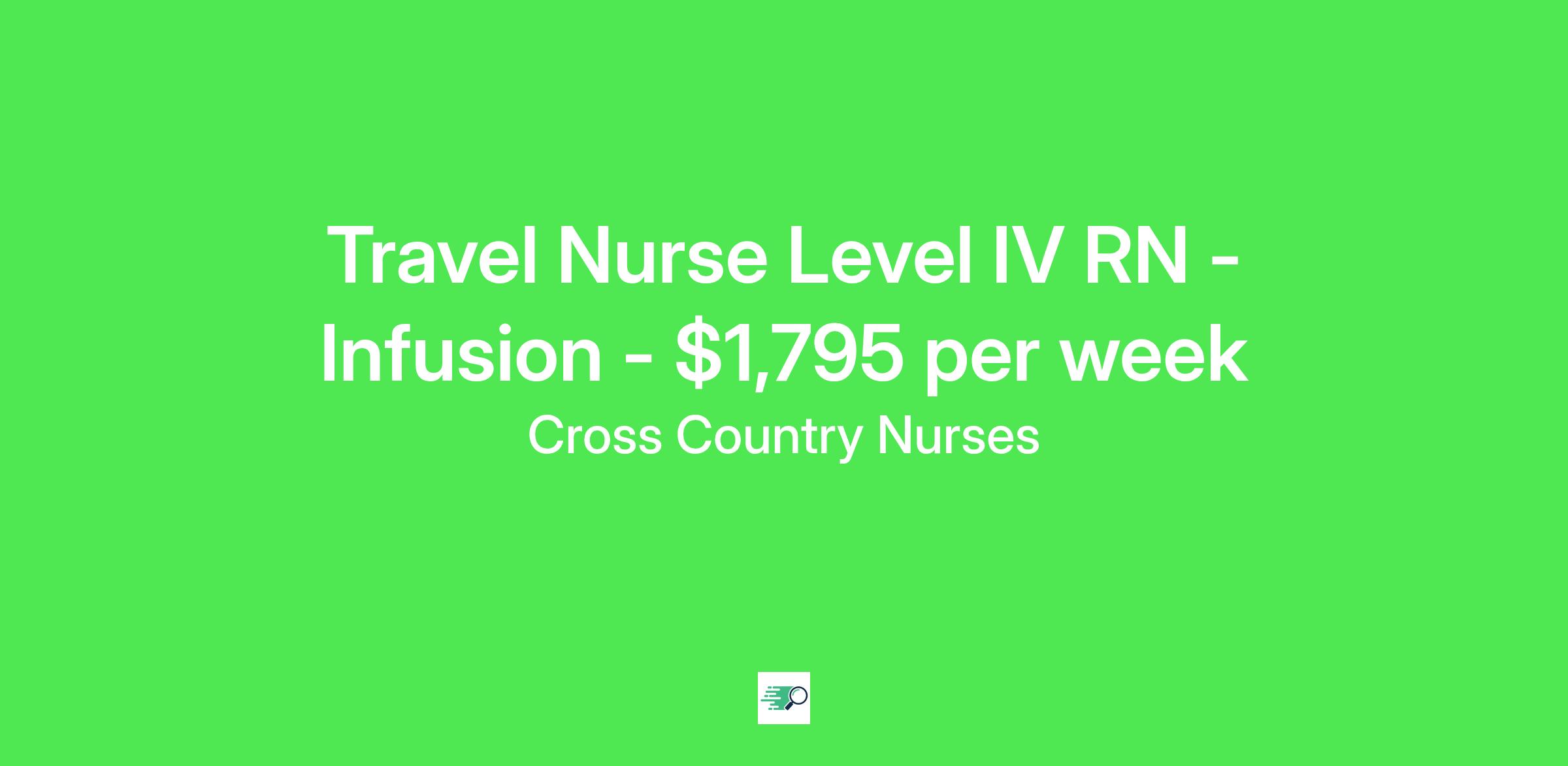 Cross Country Nurses is seeking a travel nurse RN Infusion Level IV for a travel nursing job in Portsmouth, New Hampshire.