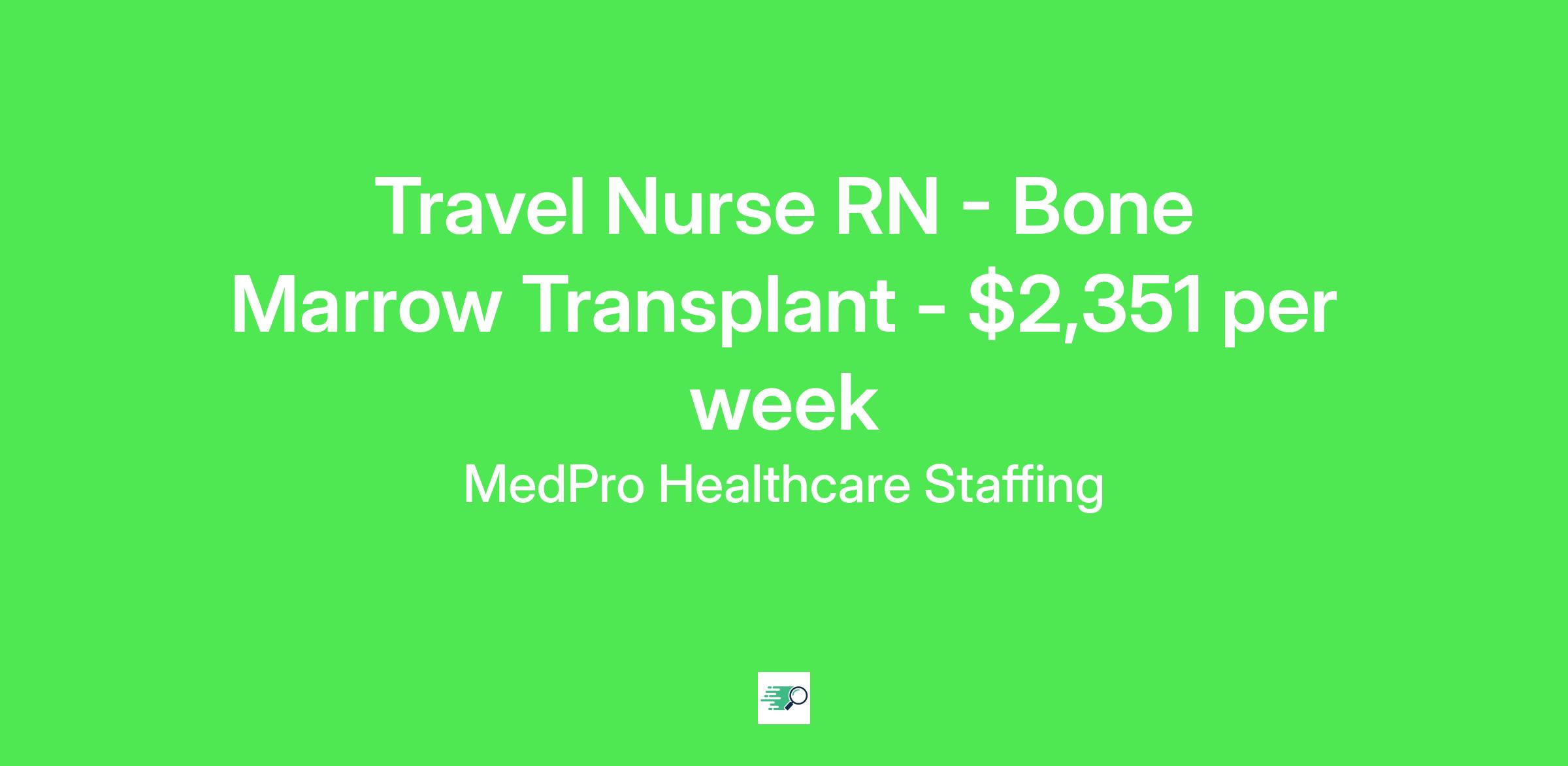 MedPro Job ID . Pay package is based on 10 hour shifts and 40 hours per week (subject to confirmation) with tax-free stipend amount to be determined. Posted job title: Bone Marrow Transplant Registered Nurse Nursing: Bone Marrow Transplant.