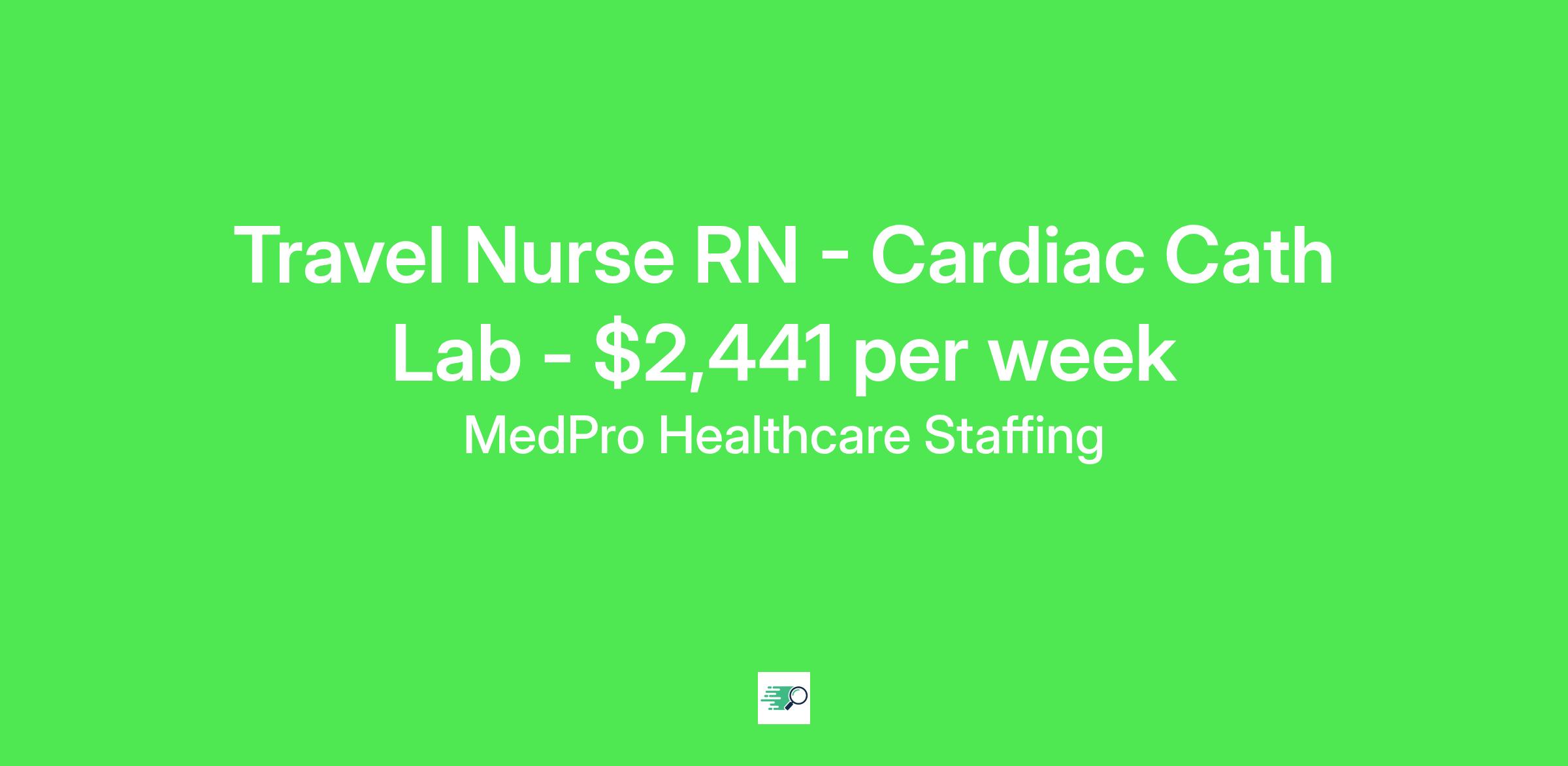 MedPro Job ID . Pay package is based on 8 hour shifts and 40 hours per week (subject to confirmation) with tax-free stipend amount to be determined. Posted job title: Cath Lab Registered Nurse Nursing: Cath Lab Nurse (Diagnostic).
