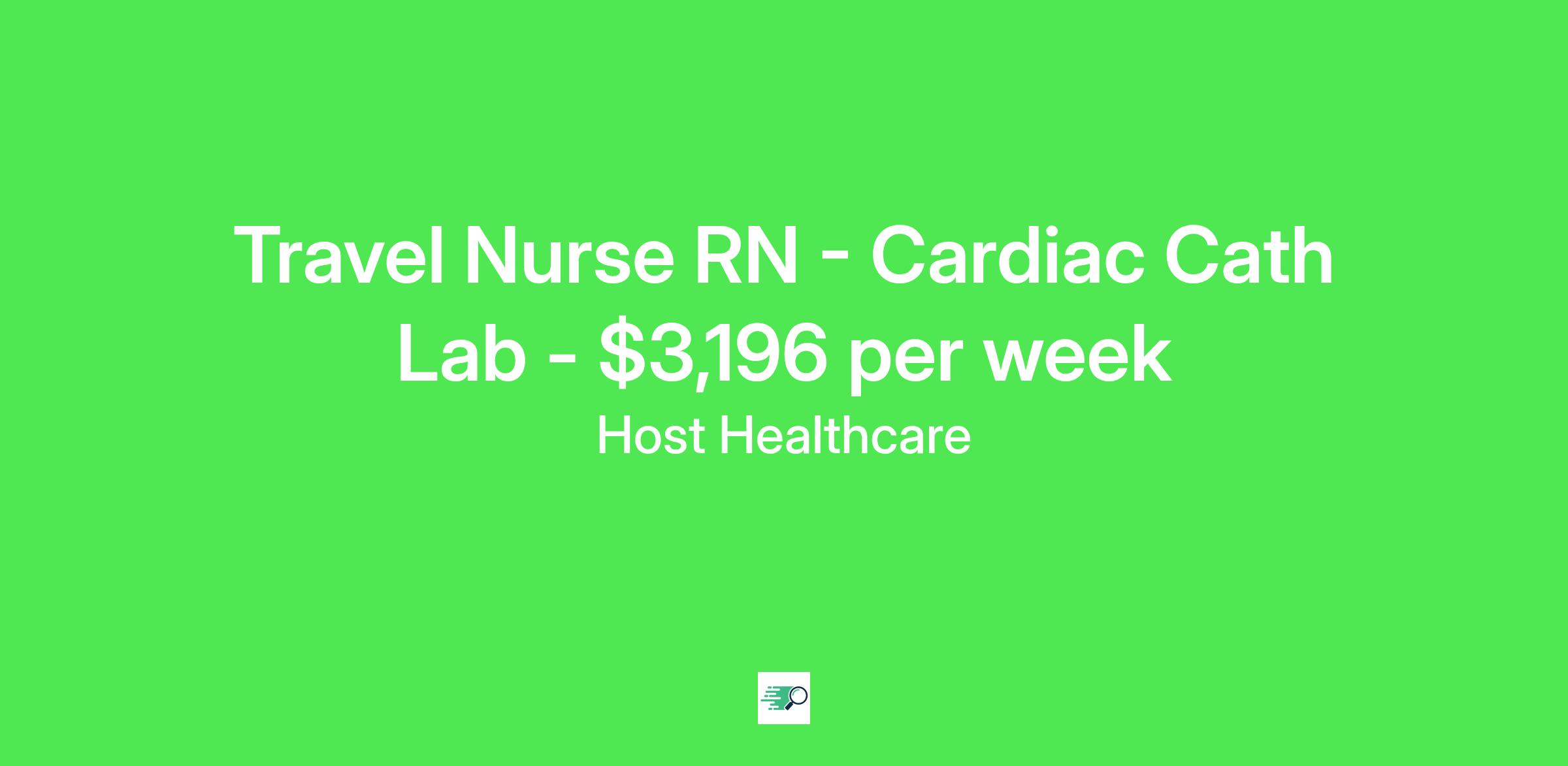 Job Description & RequirementsHost Healthcare Job ID . Pay package is based on 12 hour shifts and 48 hours per week (subject to confirmation) with tax-free stipend amount to be determined. Posted job title: RN - Cardiac Cath Lab