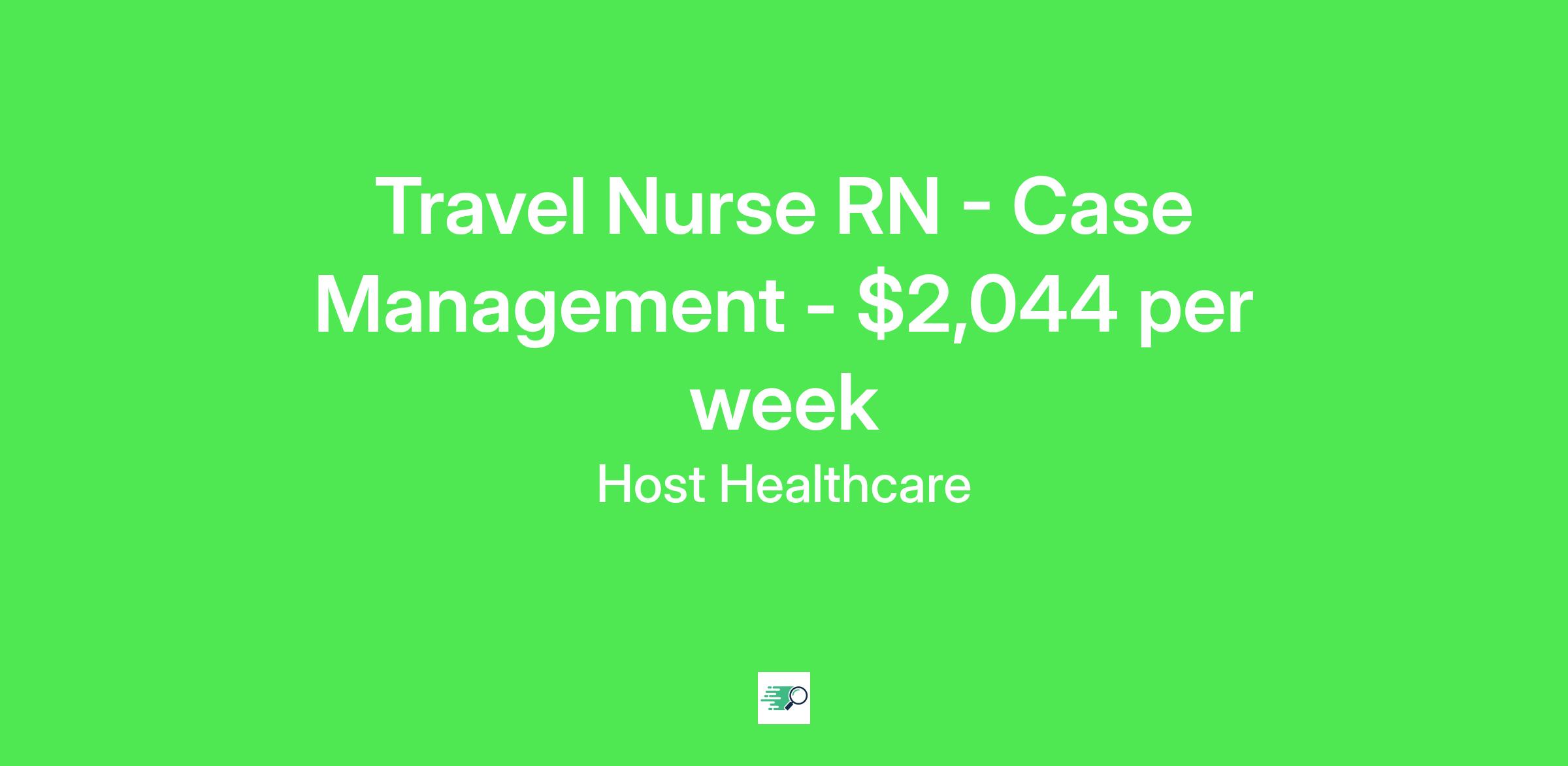 Job Description & RequirementsHost Healthcare Job ID . Pay package is based on 8 hour shifts and 40 hours per week (subject to confirmation) with tax-free stipend amount to be determined. Posted job title: RN - Case Management