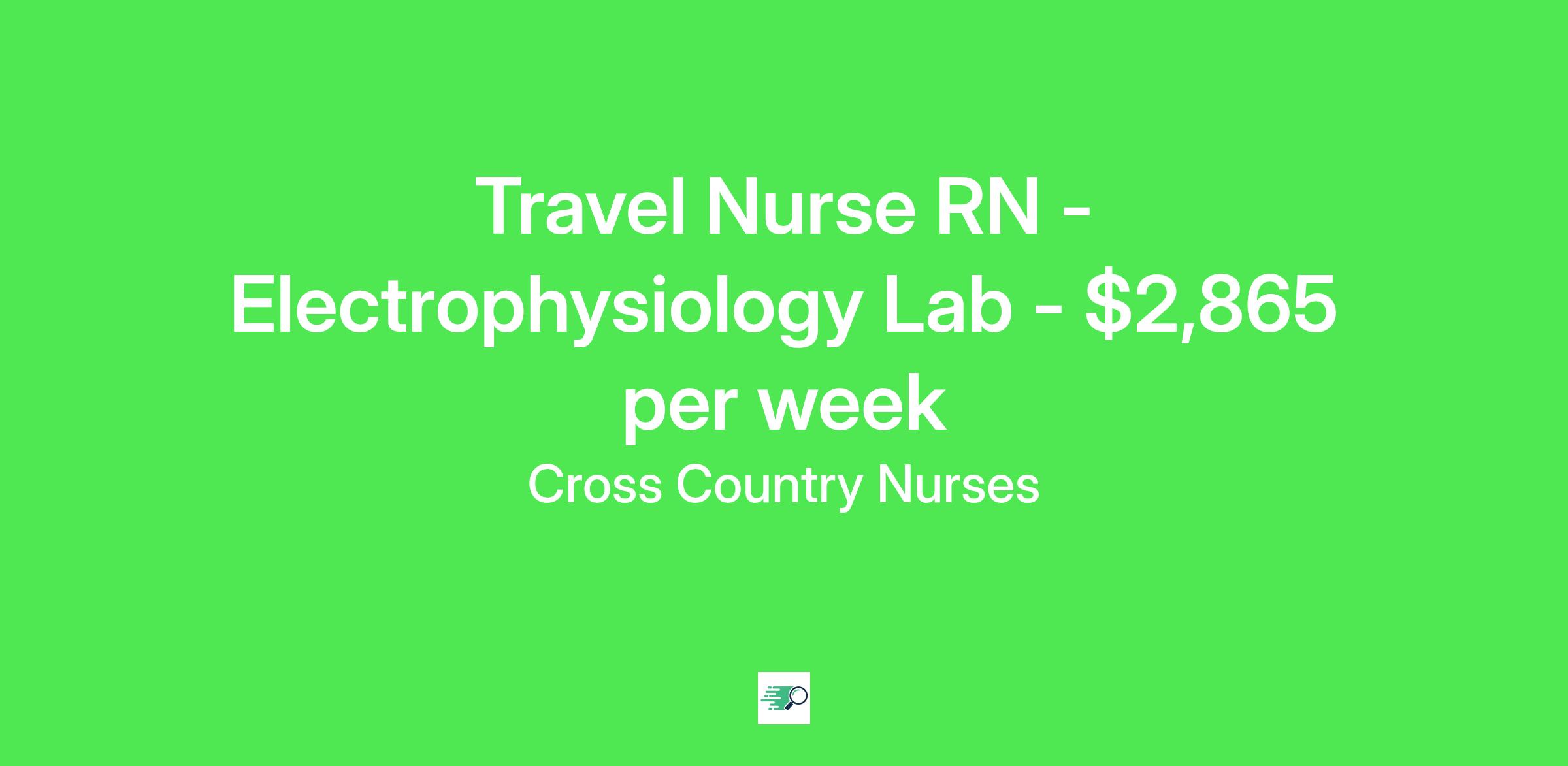 Minimum RequirementsCross Country Job ID . Pay package is based on 10 hour shifts and 40 hours per week (subject to confirmation) with tax-free stipend amount to be determined. Posted job title: Registered Nurse / Electro Physiology Lab