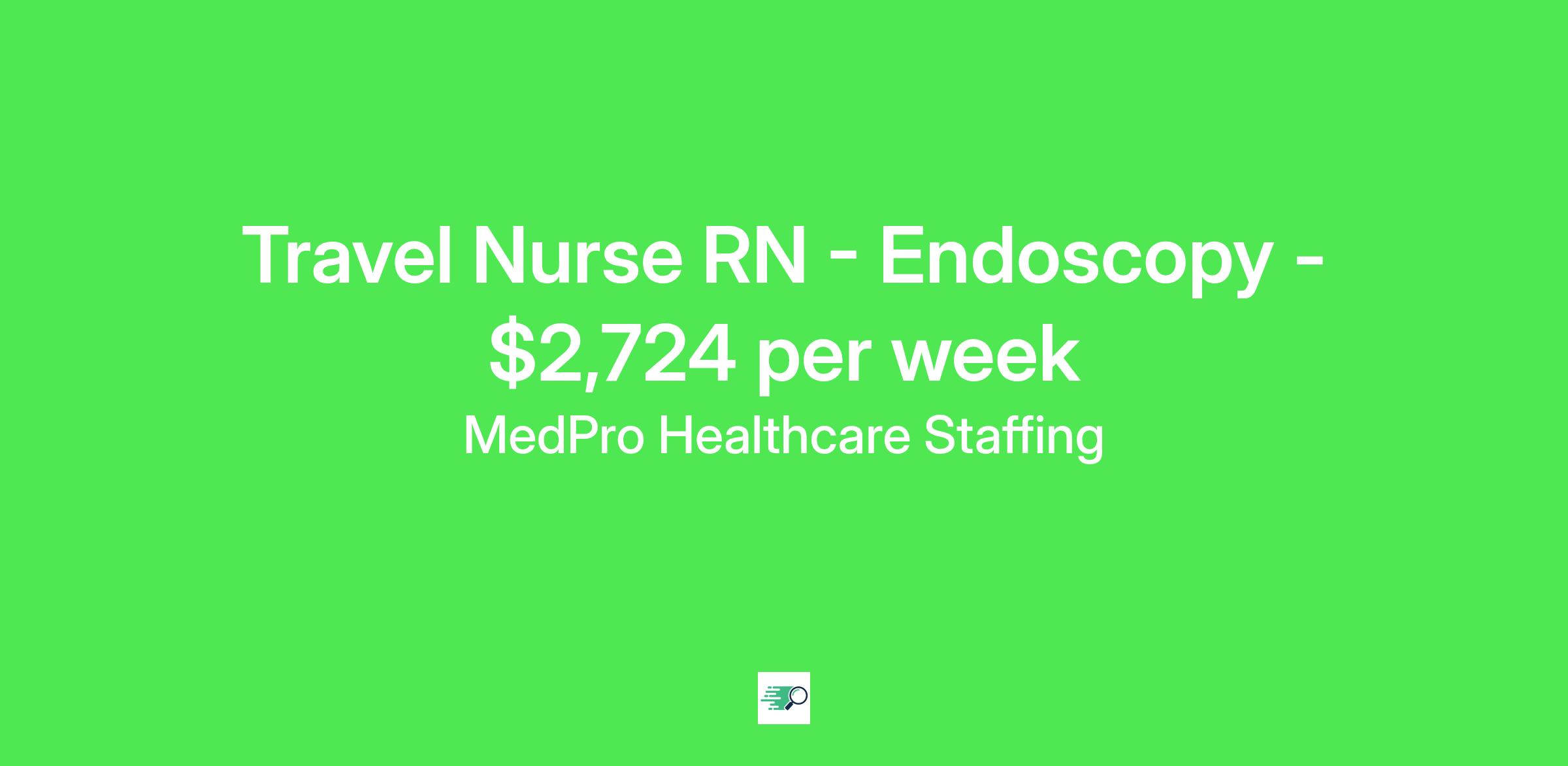 MedPro Job ID . Pay package is based on 8 hour shifts and 40 hours per week (subject to confirmation) with tax-free stipend amount to be determined. Posted job title: Endoscopy Registered Nurse Nursing: Endoscopy.