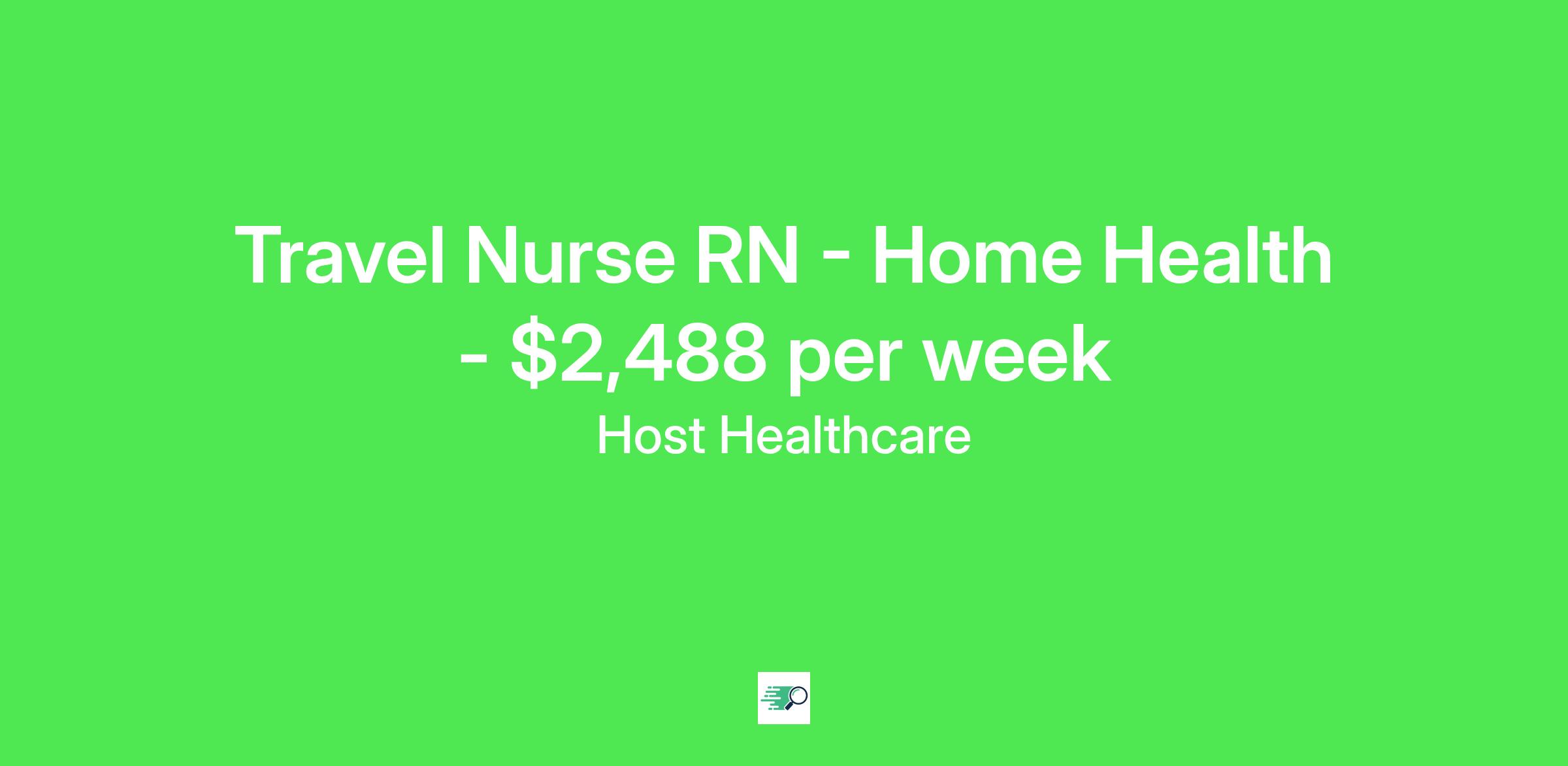 Job Description & RequirementsHost Healthcare Job ID . Pay package is based on 8 hour shifts and 40 hours per week (subject to confirmation) with tax-free stipend amount to be determined. Posted job title: RN - Home Health