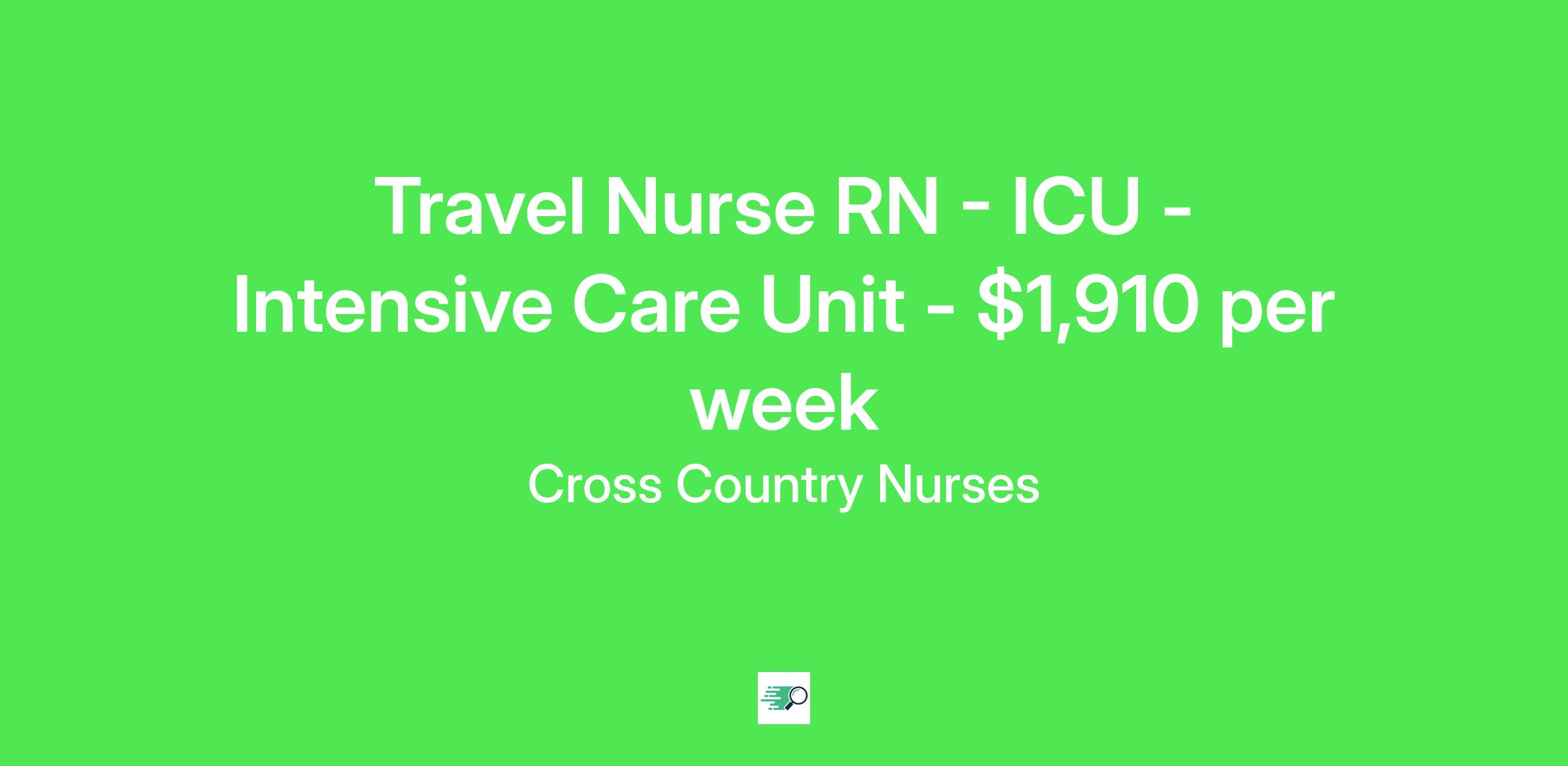 Minimum RequirementsCross Country Job ID . Pay package is based on 12 hour shifts and 36 hours per week (subject to confirmation) with tax-free stipend amount to be determined. Posted job title: Registered Nurse / Intensive Care Unit