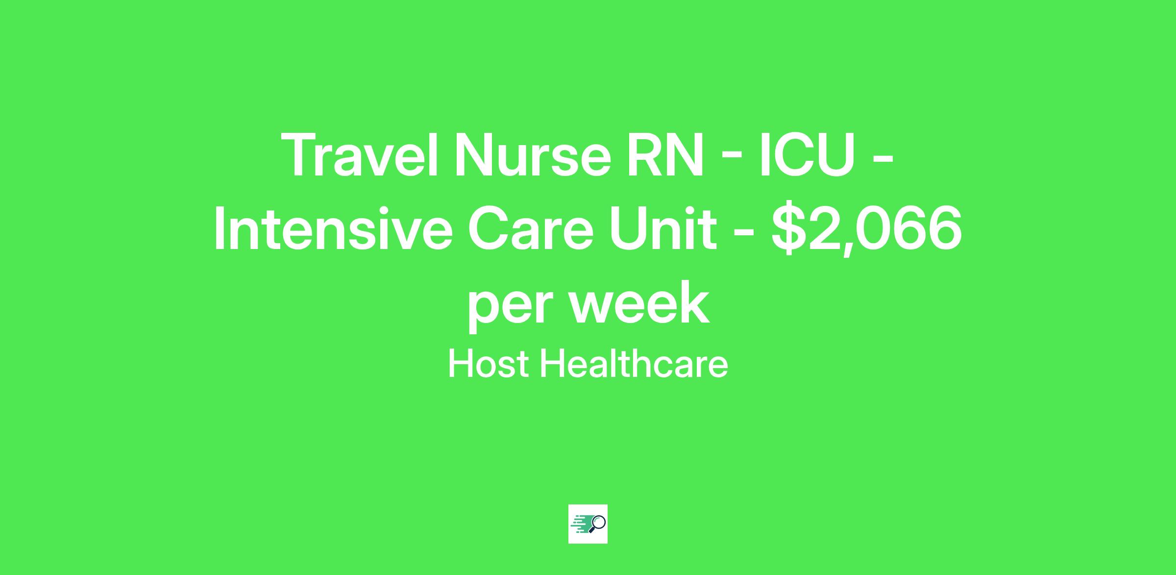 Job Description & RequirementsHost Healthcare Job ID . Pay package is based on 12 hour shifts and 36 hours per week (subject to confirmation) with tax-free stipend amount to be determined. Posted job title: RN - ICU
