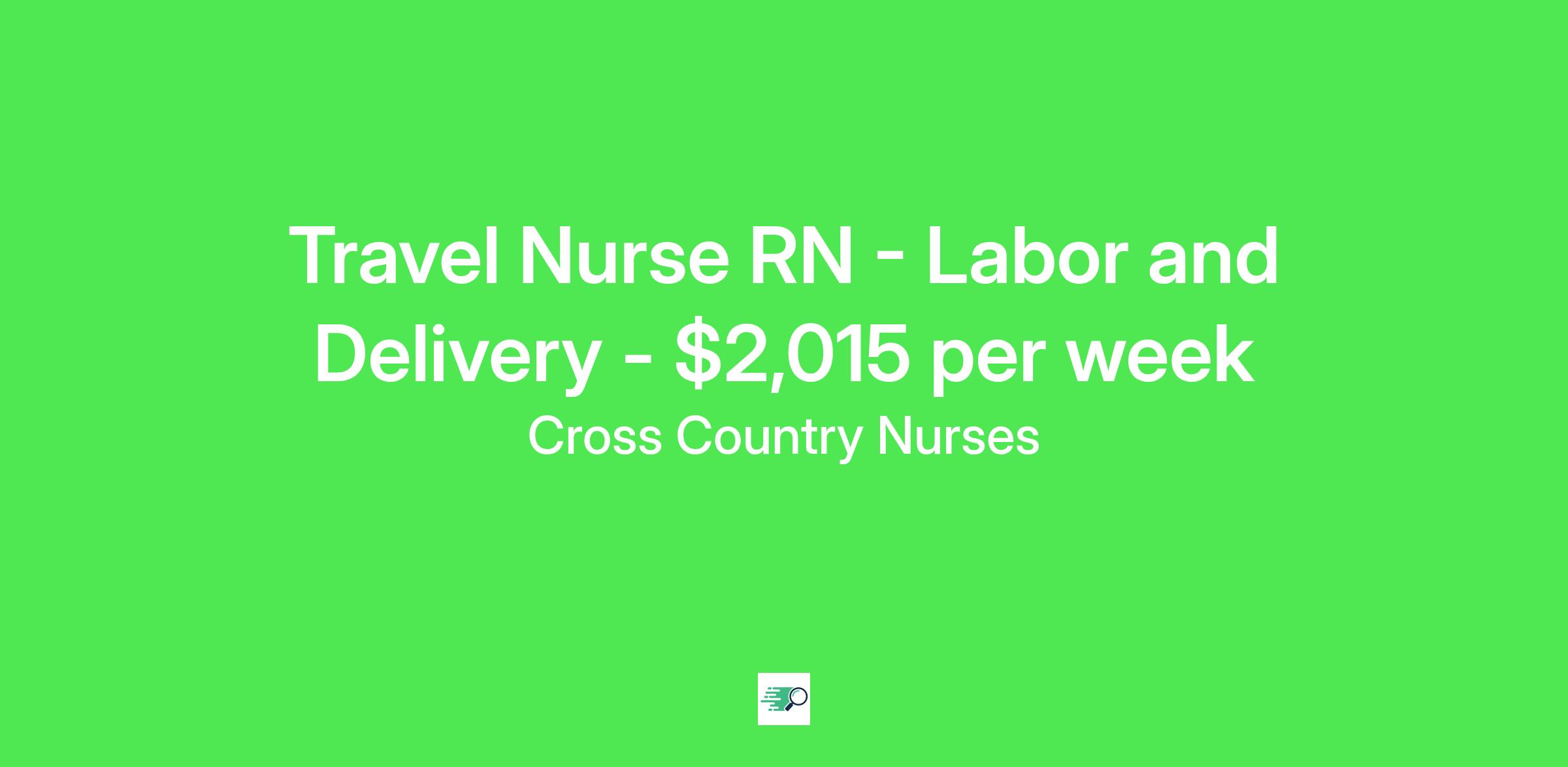 Minimum RequirementsCross Country Job ID . Pay package is based on 12 hour shifts and 36 hours per week (subject to confirmation) with tax-free stipend amount to be determined. Posted job title: Registered Nurse / Labor And Delivery Department