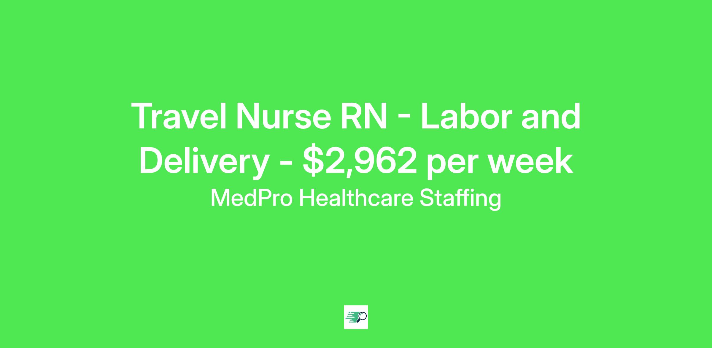 MedPro Job ID . Pay package is based on 12 hour shifts and 36 hours per week (subject to confirmation) with tax-free stipend amount to be determined. Posted job title: Labor & Delivery Registered Nurse Nursing: Labor and Delivery.